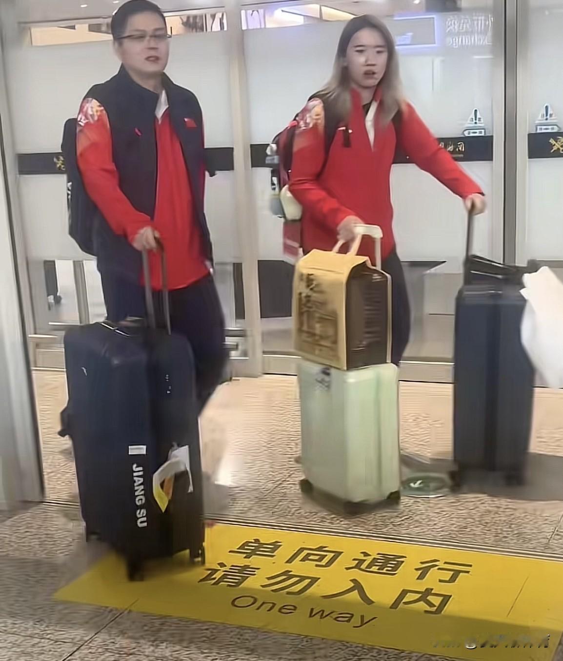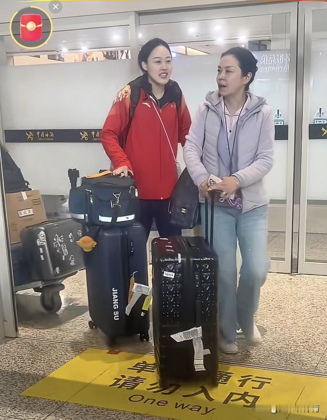 江苏女排带着金牌,凯旋归来!今天下午在南京禄口机场,昨天摘得全运会女排冠军的江苏女排平安抵达南京,刁琳宇、倪非凡、唐欣、孙燕、杨佳相继走出机场,张常宁的妈妈也跟随球队一块回来,这次凯旋归来,只带回了金牌,没带回伤病,参赛的12名球员都是健健康康的,未见龚翔宇和吴梦洁,据说俩人是从澳门直接飞往✈️广东了,要代表江苏参加闭幕式,感觉俩人会是闭幕式的旗手!