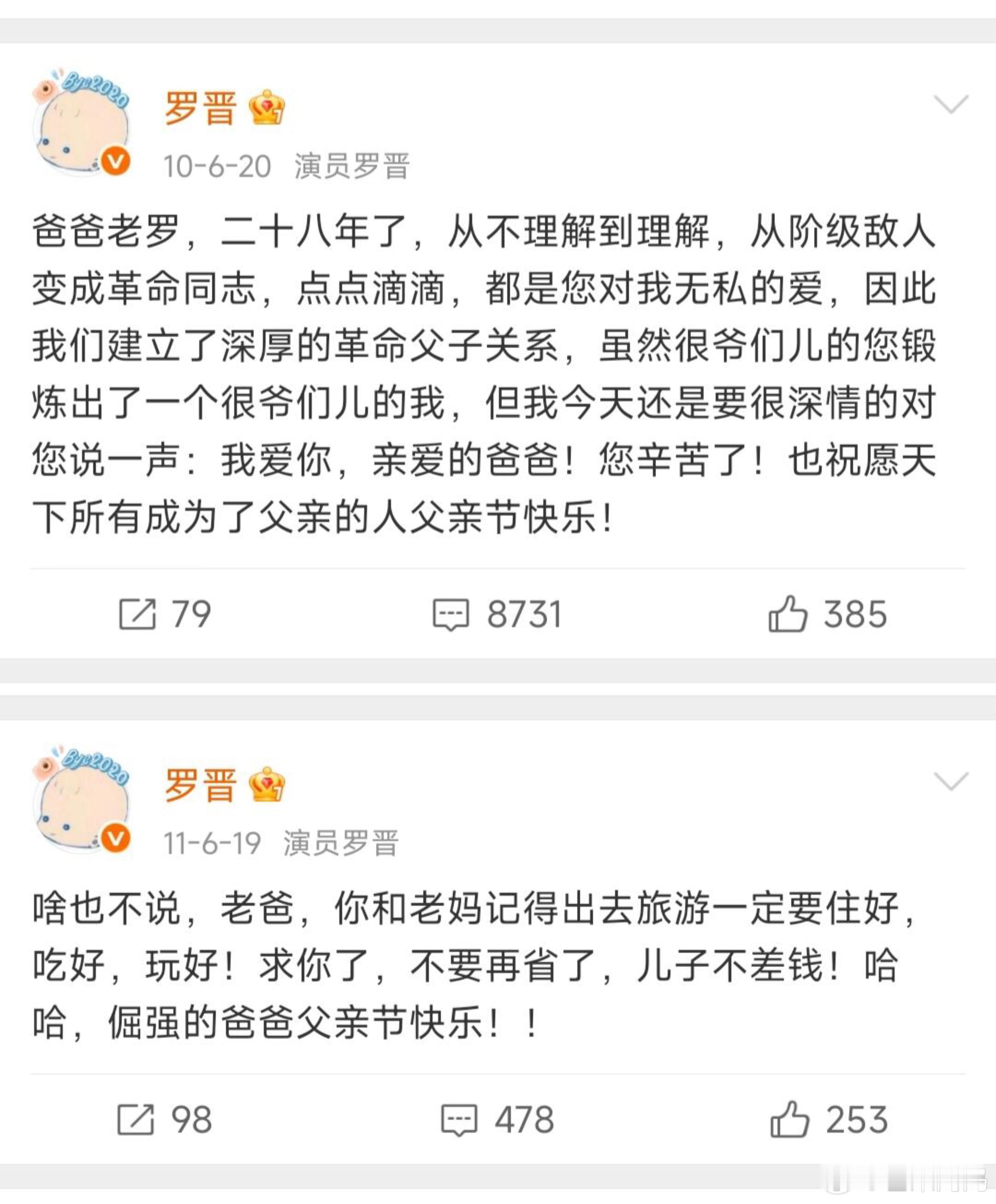 罗晋的微博,记录了很多很多对父母的爱,不敢想他这段时间有多难过……