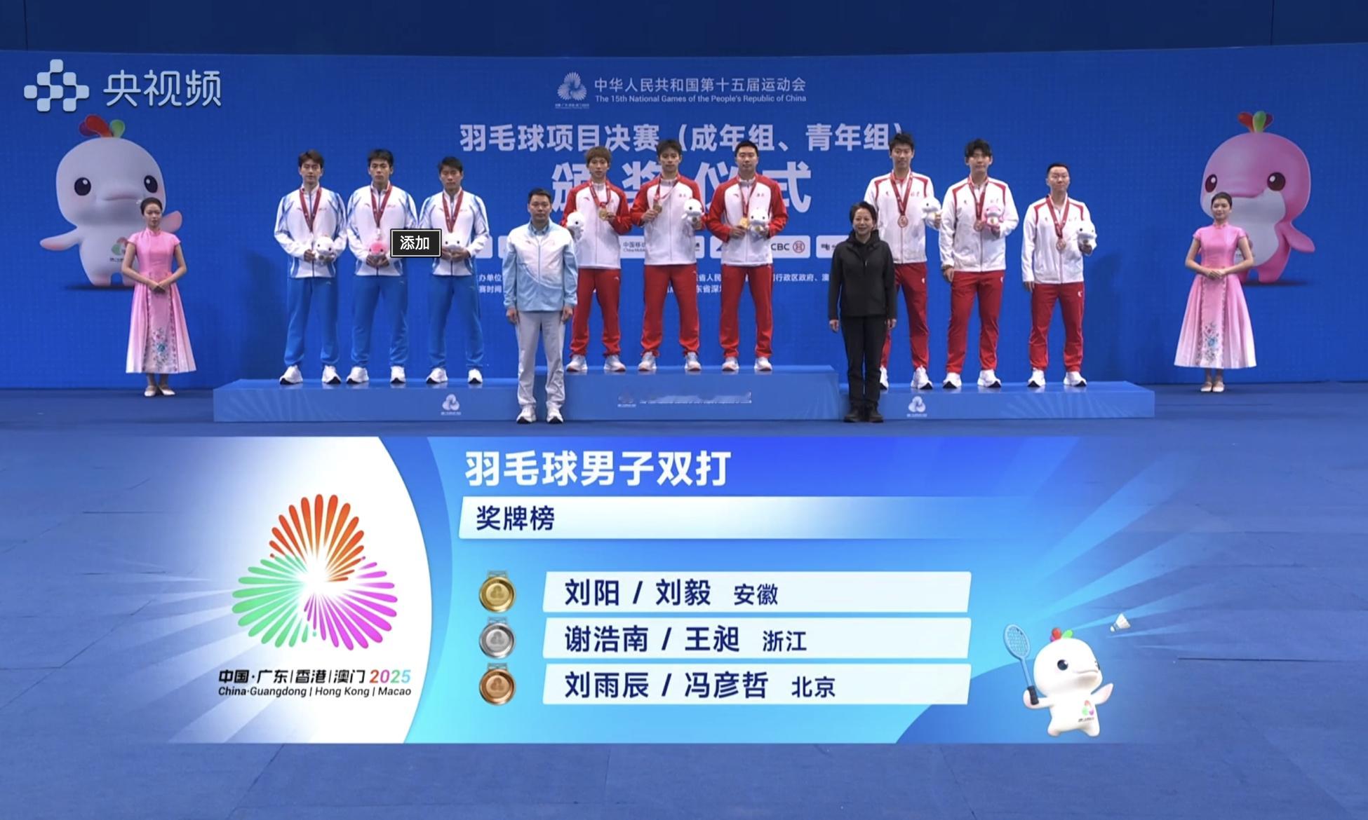 男双冠军:刘阳/刘毅(安徽)男双亚军:谢浩南/王昶(浙江)男双季军:刘雨辰/冯彦哲(北京)恭喜各位!!🎉🎉🎉🎉