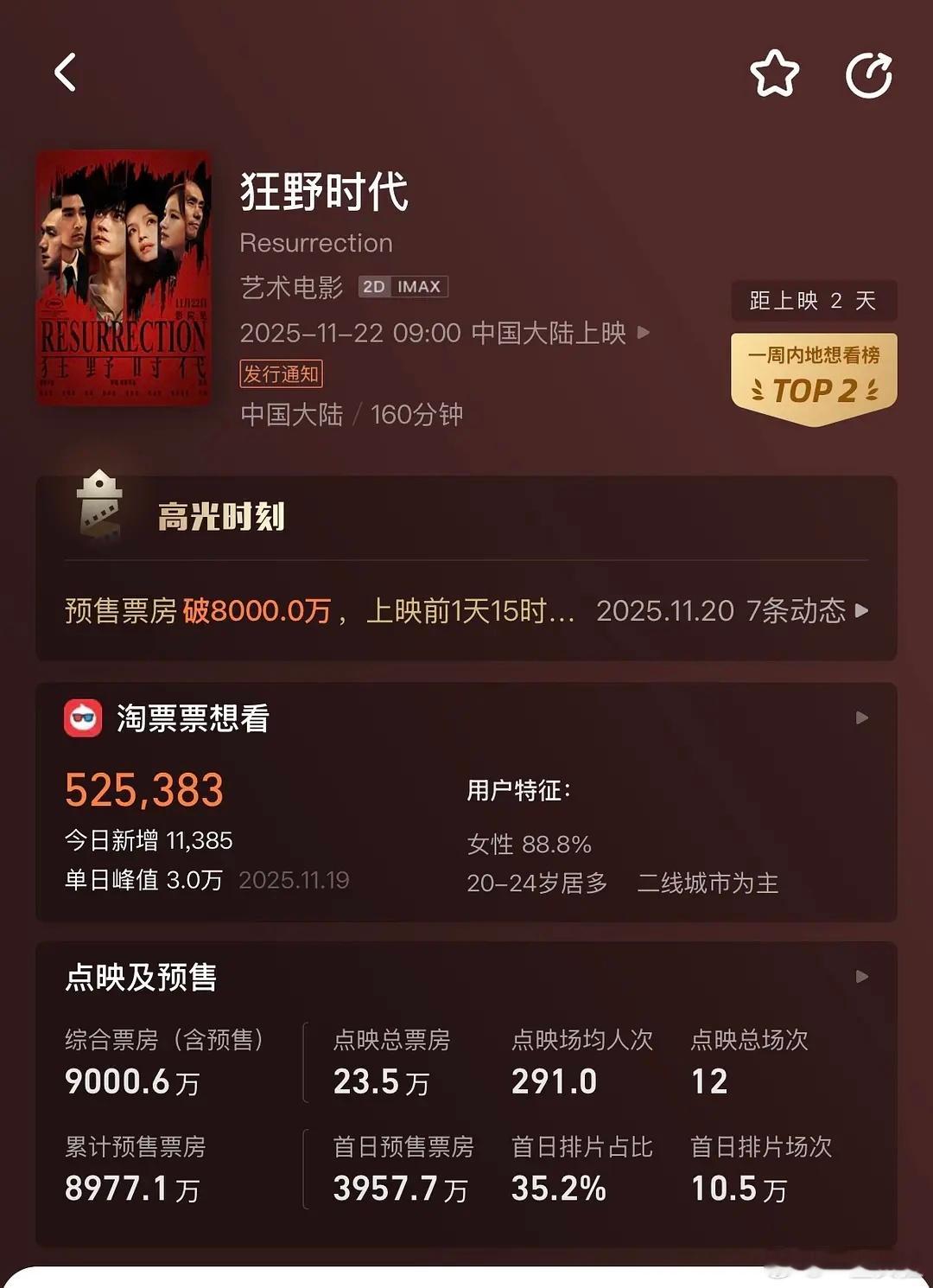 狂野时代预售票房破9000万上映前应该能破亿鸟姐牛的