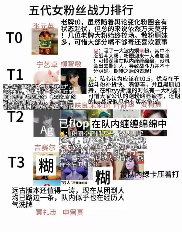 五代女爱豆粉圈测评