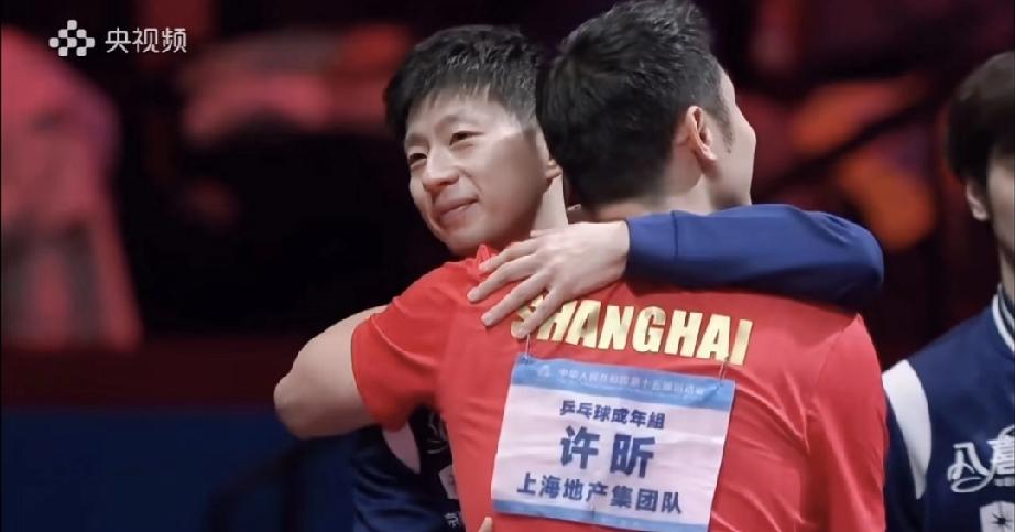 哭了! 马龙和许昕的这个拥抱,太震撼了。 看到这个场景,感慨男队马龙和许昕的乒乓生涯好像刚开始,没想到是要落幕了。 网友说也许这是他们最后一届全运会,虽然代表不同的省,但是面对曾经的队友,能在场上继续拼搏就是一种幸福。 全运会马龙代表北京队,许昕代表上海队。 看着他们拥抱,感慨量多。 曾经他们也是青春年少,蒸蒸日上。 如今却只在大赛中偶尔出现,这真是看他们比赛看一场少一场。 所以大家都要珍惜。 马龙和许昕的拥抱,有幸福,有感慨更多是对往昔峥嵘岁月的一个怀念吧。