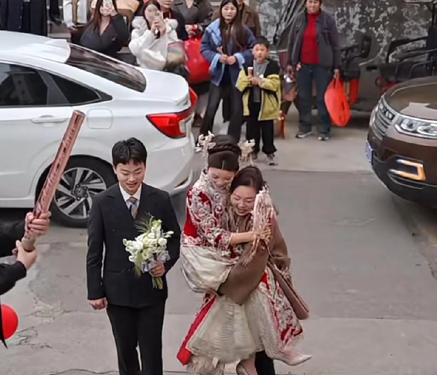 婆婆把新郎该干的事给干了,这样真的好吗?新娘下婚车,婆婆一把抱起新娘走向家里。 看这婆婆也是真喜欢这个儿媳妇,抱着新娘子喜笑颜开走的虎虎生风,新郎在旁边都差点跟不上。 婆婆能做到这份上也是百里挑一了,希望结婚后也能这样对待儿媳妇就更好了。 同时也要让点位置给儿子表现表现,毕竟要过一生的是他们小两口,婆婆再好也只能打辅助。