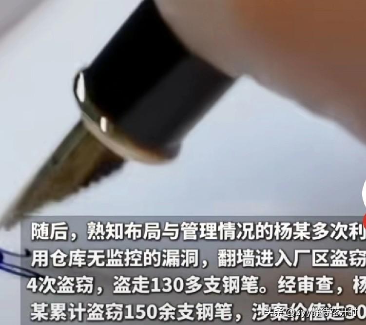 近日,一男子先后盗窃单位150支钢笔,价值30万元!事情败露后,他就被帽子叔叔带走了! 刚开始,男子只拿了几支笔,但没被别人发现!后来,胆子就练大了! 他共盗窃了,150支钢笔共获利十七万多元!经法院审理后,该男子被判了七年的有期徒刑,还罚了五万块钱! 这又是判刑,又是罚金的!男子的肠子,都悔青了!但既定的事实,他已无力改变! 只能在牢狱中,慢慢的忏悔了!君子爱财取之有道,早知今日何必当初啊!