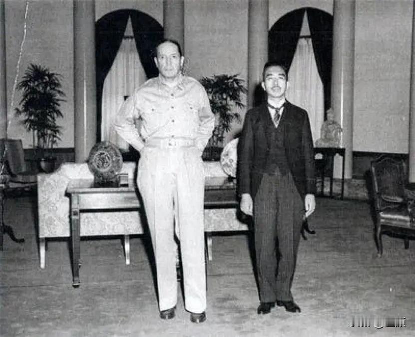 密苏里号军舰,日本投降仪式,重光葵签字时,麦克阿瑟双手插兜。 日本皇宫,不打领带、一身便装、双手叉腰的麦克阿瑟与身着正装的天皇合影。 至今也没见哪个鬼子骂美国人态度恶劣、素质不高