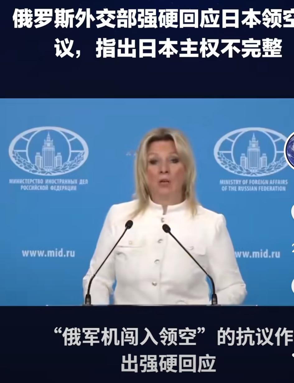 俄日空中对峙升级!扎哈罗娃三句话戳穿日本双标假面 日本高调抗议俄战机“侵犯领空”,没想到被俄外交部发言人扎哈罗娃的连环反击怼得哑口无言,这场外交交锋堪称精彩对决。 事件起因是日本防卫省宣称,俄一架伊尔-38反潜巡逻机在北海道礼文岛附近三次进入其“领空”,日方随即出动F-15、F-35战机拦截并发射热焰弹,还通过外交渠道强势抗议,摆出十足的“受害者”姿态。 但扎哈罗娃的回应堪称精准打击。先是抛出灵魂拷问:“二战战败国何来完整主权?” 一句话点破日本的历史定位,战后国际条约早已对其主权范围划清界限,这番质问如同利刃直刺要害。接着直指双标本质:“美国在日驻军设基地视而不见,反倒揪着俄战机大做文章?” 戳穿日本对不同国家军事存在的两套标准,虚伪面具被当场撕下。最后放出狠话,若持续无端抗议将视为妨碍公务,态度强硬毫不退让。 俄方后续更用行动加码,暂停和平条约谈判、制裁日本官员,太平洋舰队军演与轰炸机巡航齐上阵,如同给日本的抗议泼了盆冷水。 这场交锋里的双重标准太明显,你觉得日本此次抗议真的站得住脚吗?