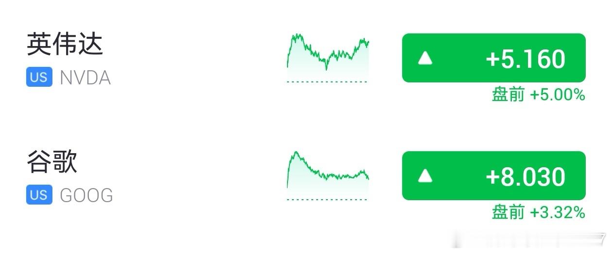 谷歌盘前3%涨好了,英伟达5%。还是美股简单,看到利好再追高,都不套你,很良心