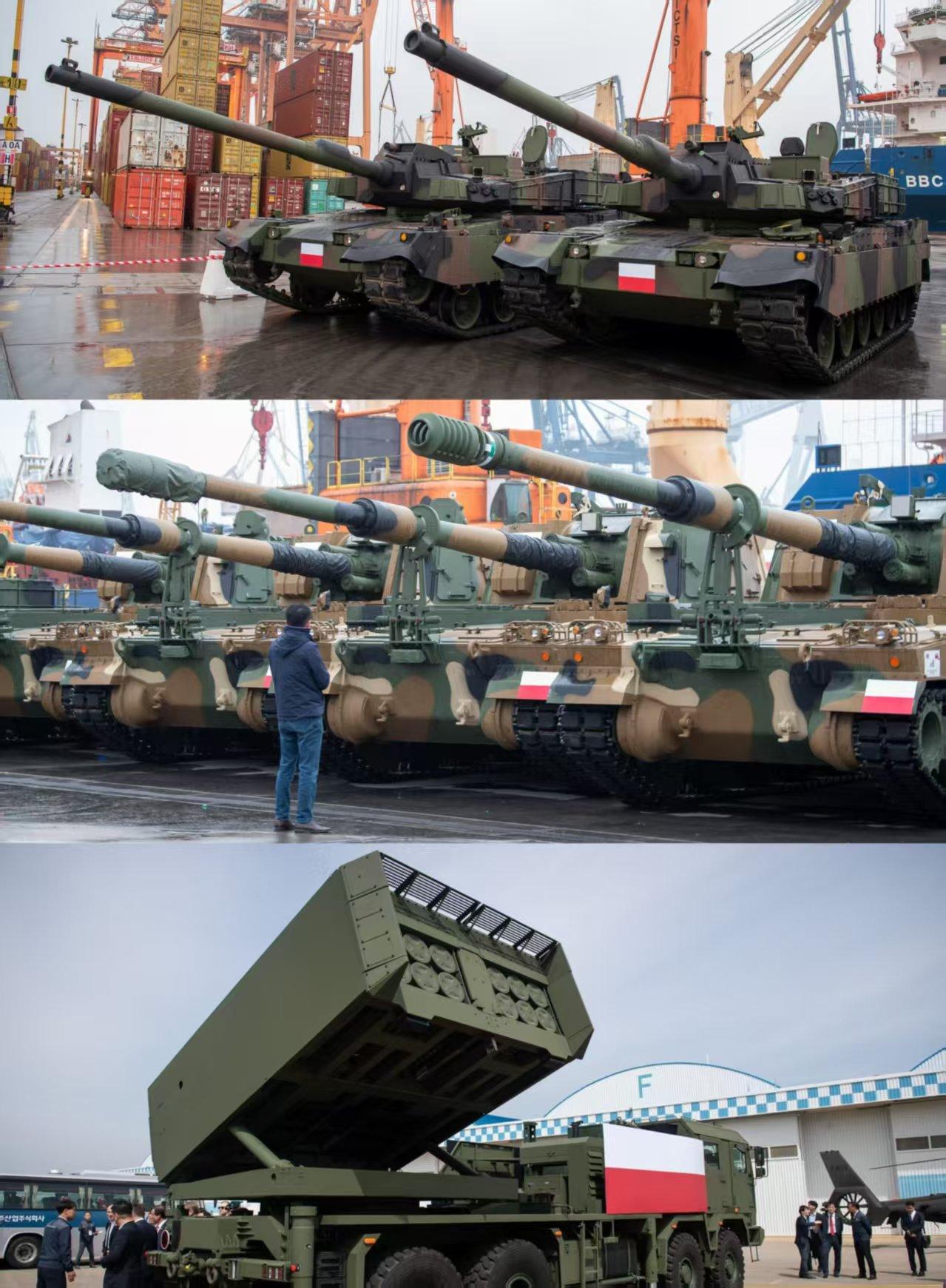 整船整船坦克大炮,从韩国运输到欧洲,都是准备和俄罗斯打仗的。波兰军队已经全部接收了2022年订购的180辆韩国K-2黑豹坦克,现在正在接收第二批韩国K-2黑豹坦克,以及更多K-9型155毫米自行火炮,K239“天武”多管火箭炮。 波兰接收武器的速度和规模早超出了“正常换装”的范畴,2022年订的180辆K-2“黑豹”坦克陆续交付,算上追加的订单,波兰计划最终搞出800辆K-2PL升级版坦克,还要在本土建生产线,2026年前就能自己组装。 这些坦克可不是堆在仓库里看的,直接拉去了东部边境,那里紧挨着俄罗斯飞地加里宁格勒和白俄罗斯,是北约东翼的最前沿。 连运输都透着效率,韩国现代格罗维斯用改装的散货船,坦克不用拆就能直接装卸,2025年光这家公司就往波兰运了124辆K2和60门K9,物流频率比平时翻了好几倍。这种“下单即交付、交付即部署”的节奏,就像是在抢时间补战力。 更能说明问题的是波兰砸在军备上的真金白银。2026年的国防预算直接飙到GDP的4.8%,比2025年的4.7%还高,换算下来有549亿美元,这笔钱除了买韩国武器,还砸向了美制F-35战斗机、“爱国者”防空系统,还想把军队规模扩到50万人,坦克总数突破1000辆,摆明了要打造北约东翼的“钢铁屏障”。 而且波兰不只是自己买,还在给整个欧盟“补位”,它向乌克兰输送了100多辆T-72坦克等武器,自己的装备缺口就靠其他国家武器填,等于间接支撑了欧盟对乌援助的持续化。 而波兰选韩国武器也藏着备战的算计。欧美军工产能跟不上,德国豹2坦克交付得等好几年,美国M1A2单价要2400万美元,而韩国K-2基础版只要800多万美元,还能保证2年就交货,本土化生产后甚至能缩短到1年。 更关键的是K-9火炮能兼容所有北约弹药,射程超40公里,早就在俄乌战场试过水,拿来就能用;K2坦克的主动防御系统、自动装填炮,完全能融入北约作战体系。这种“性价比高、交付快、能兼容”的选择,本质就是为了快速形成实战能力,而不是搞面子工程。 现在波兰东部边境已经挖好了反坦克壕沟,建了混凝土堡垒群,电子侦察系统能盯着俄罗斯西部军区的一举一动。那些从韩国运来的坦克大炮,正一辆辆填进这些防御体系里。 除了波兰之外,欧盟也在悄悄升级后勤,冯德莱恩喊着要拿8000亿欧元搞 “重新武装欧洲” 计划,听着挺唬人,不过刚出炉就吵成一团。法国非要把1500亿欧元贷款限定在买欧盟产武器,德国却坚持要开放给英国、挪威这些 “亲密伙伴”,说白了就是法国想保自家军工,德国不想得罪美国和其他盟友。 波兰的疯狂扩军,欧盟的后勤加码,北约的协同演习,说到底就是把“准备”做在前面,这些跨越半个地球运来的武器,就是最实在的准备信号。
