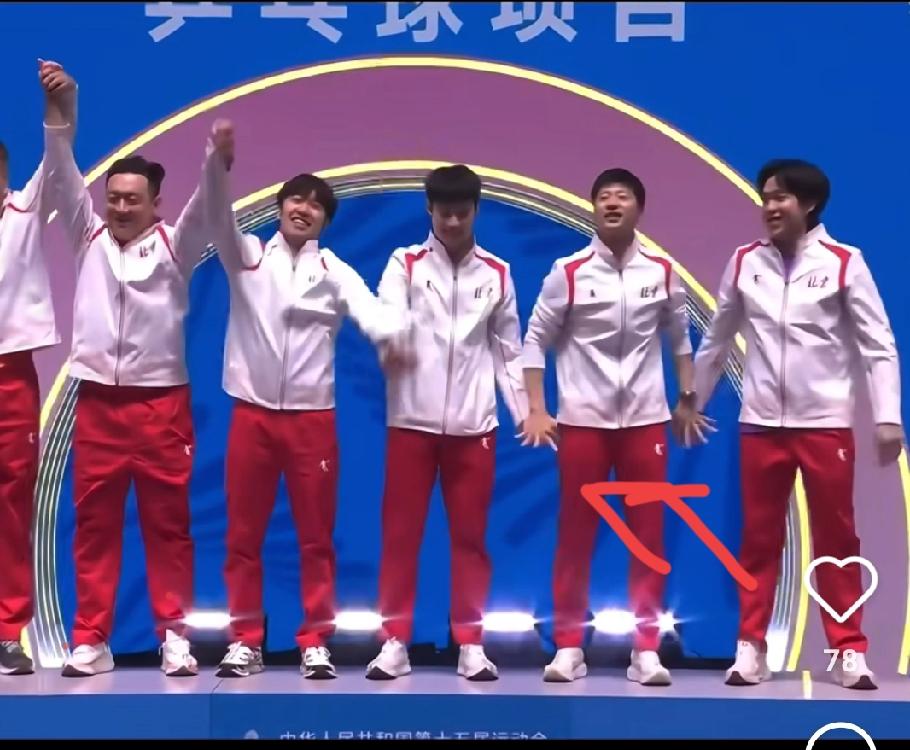 全运会乒乓球男团颁奖仪式上,我发现了一个细节, 王楚钦第一个登台一步,看到大家后又退回去一起手拉手祝贺! 结束后,其他队友都是很自然的松开手指! 只有我们的龙队,很不自然的十指展开,赶紧撒手,十指张开伸得超直的,就差甩手了! 龙队这是有洁癖吗?快速的松开了两个吉祥物弟弟的手! 乒乓王楚钦 王楚钦荣耀夺冠 马龙