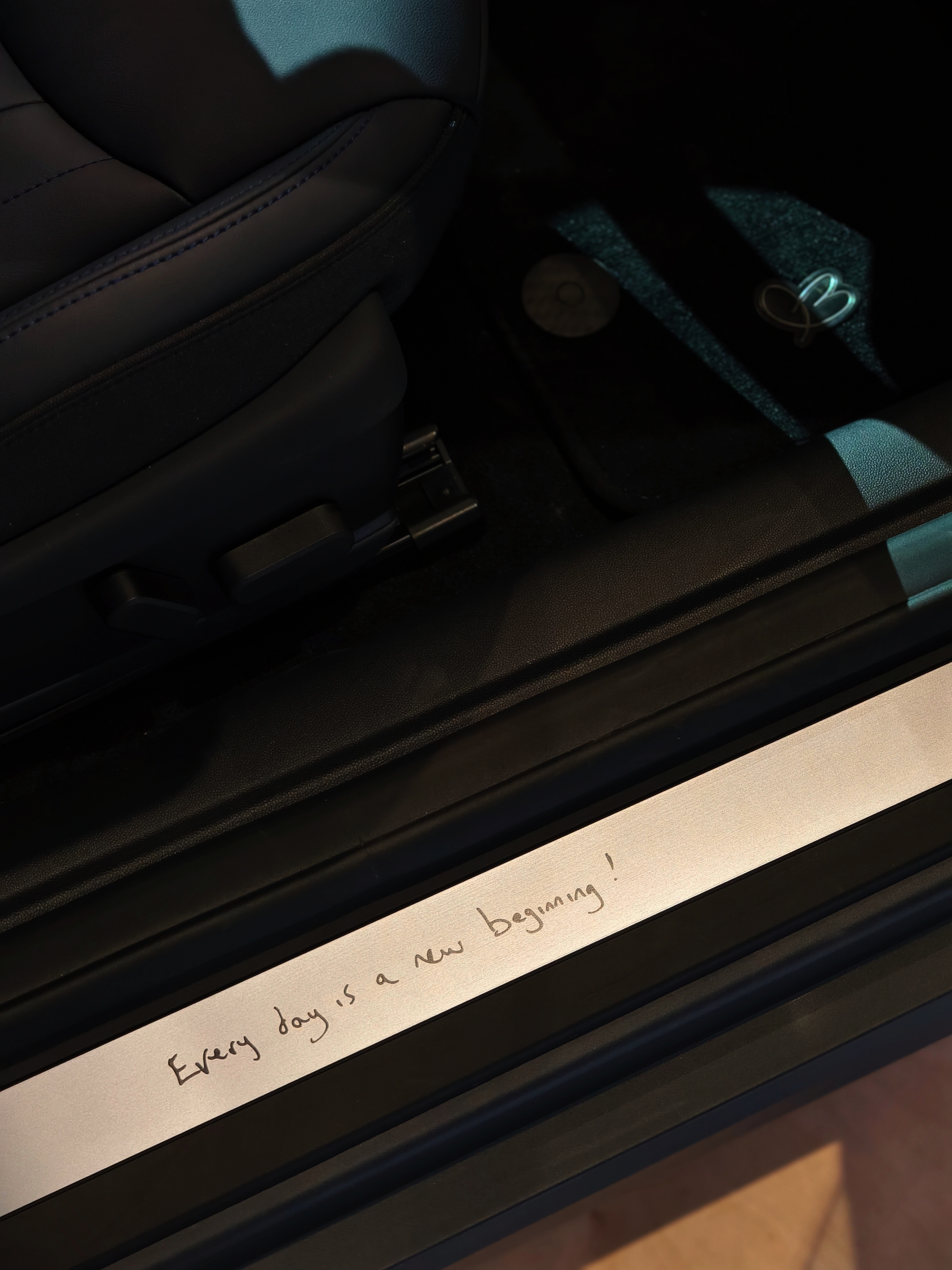 MINI PAUL SMITH 设计师款中国首秀来了!“羊皮纸白”的配色真的很清新!然后车上其实细节彩蛋特别多,经典彩条纹,地垫上的小兔子,投影的Hello灯,还有门饰板上的Everyday,总之绝对不会是一台无聊的车~这种正式与随性的融合,简单与趣味的并存,就很MINI!最后就是随处可见的设计师经典语录我真的很喜欢——Everyday is a new beginning!