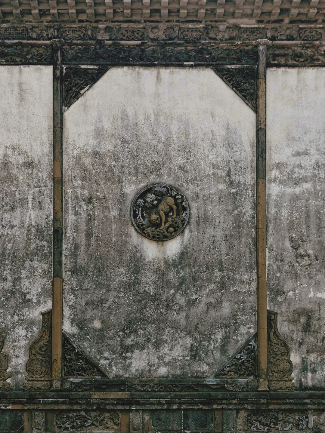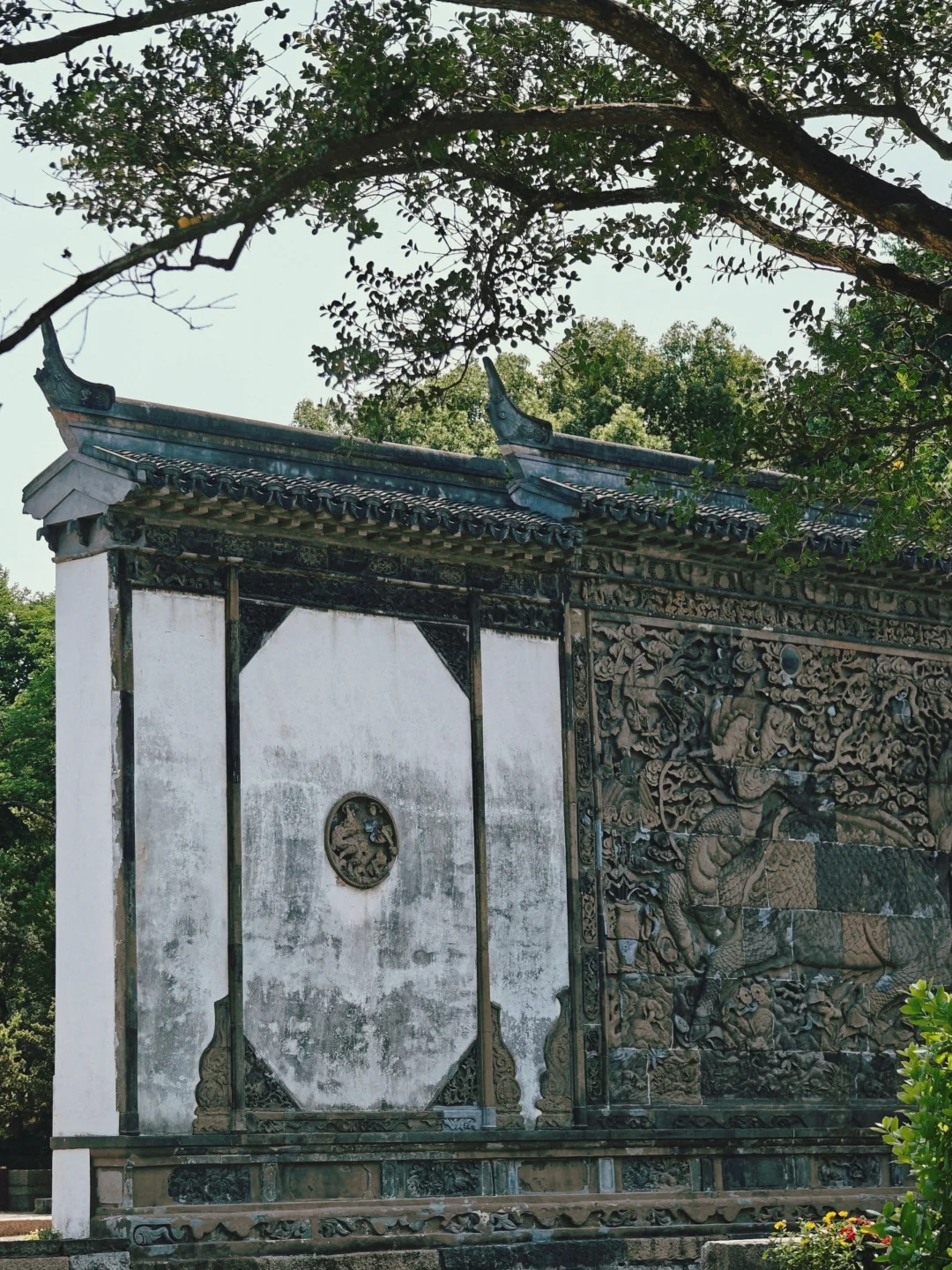 🟢砖雕照壁:明洪武三年原物,9米宽“犭贪”浮雕融合佛教宝相花与道教云纹,全国现存蕞完整明代砖雕照壁