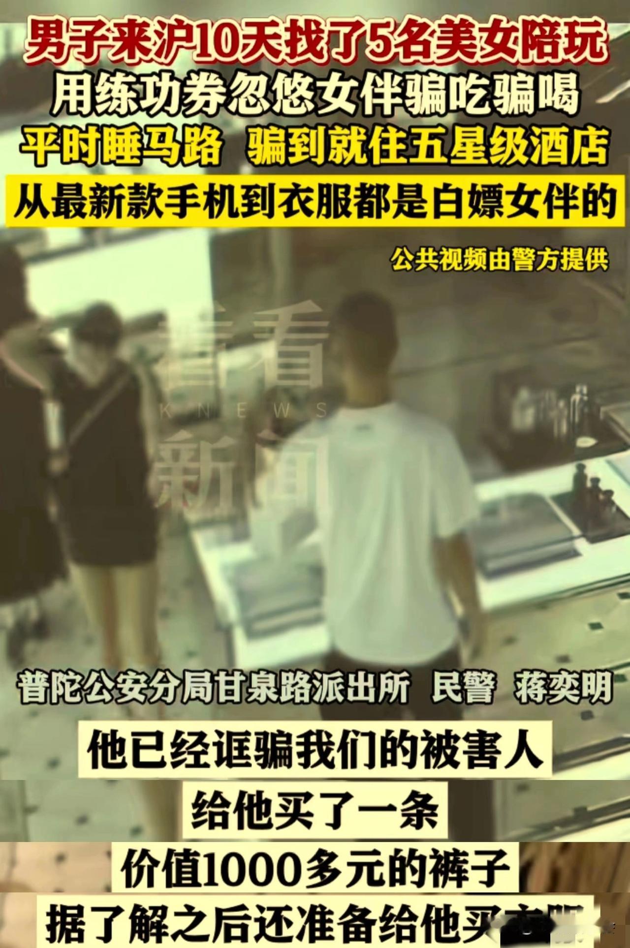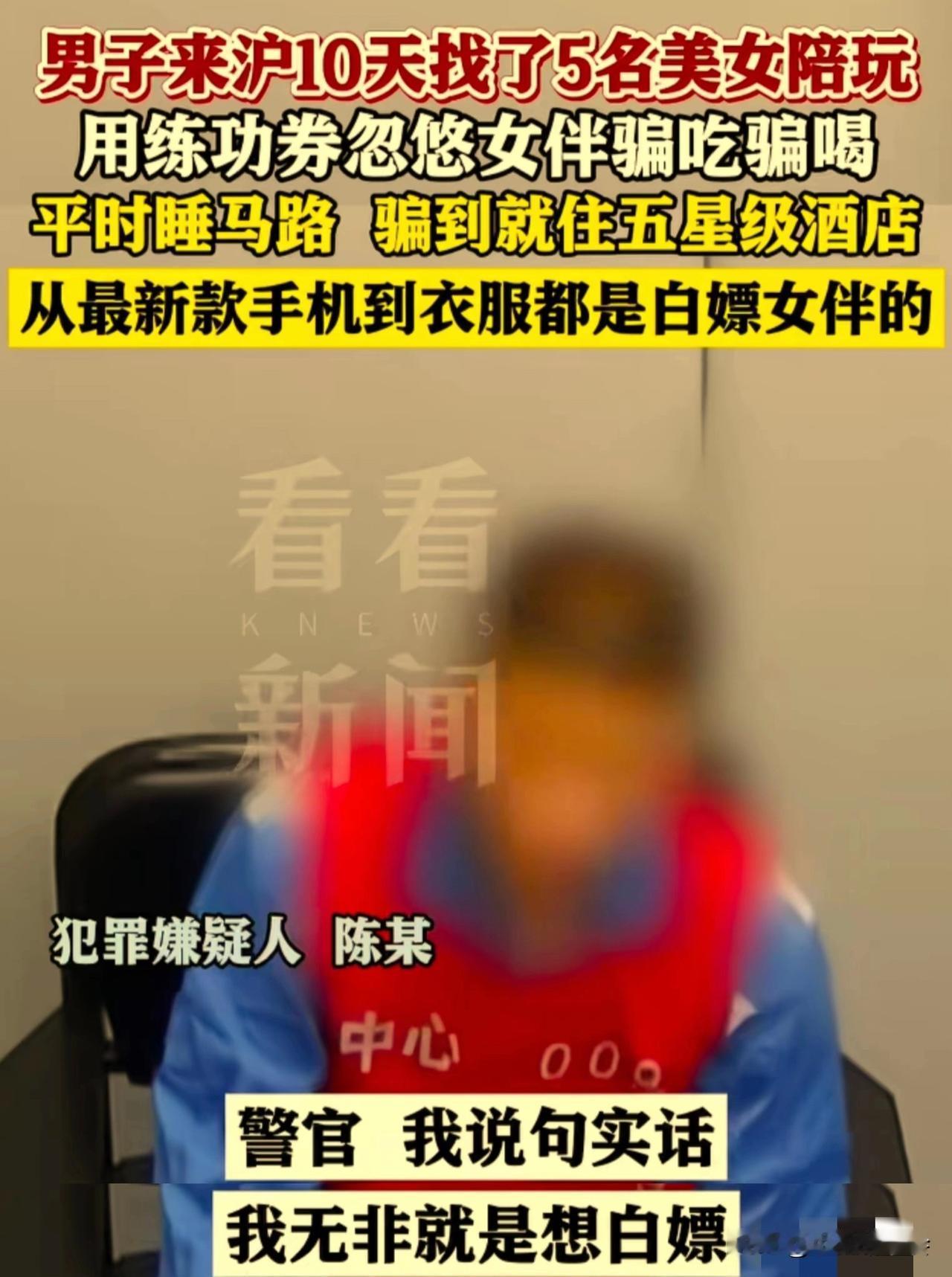 近日,一来上海务工人员陈某频繁冒充有钱人,诈骗5名美女帮其买最新款手机,买衣服,就连跟美女开房的房费都要人家去负担。 诈骗的5名美女之所以心甘情愿地为其花钱,原因竟是她们都看到了陈某拿着几捆钱币,拿着黑色塑料袋,锁进了宾馆的保险箱内。 事情最终败露,警方查实,陈某系來泸无业人员,来上海才十天,骗不到钱的时候就住马路上,骗到钱之后就住在五星级酒店里。以同样的手段诈骗了五名被害女性。 警方最终将其抓获,男子说“其实我只想白嫖!” 男子的行为以涉嫌诈骗罪,诈骗罪是以非法占有为目的,使用虚构事实、隐瞒真相等手段,诈骗公私财物的行为。 按照其诈骗的金额,该男子可能面临三年以上有期徒刑!诈骗 小伙诈骗 虚假男友诈骗 诈骗女人 网络诈骗女 小伙被诈骗 江苏女子诈骗 海南诈骗 骗女生套路 广州佛山诈骗 广州诈骗案 河南人骗子 介绍人诈骗 广州诈骗女 广东网恋诈骗