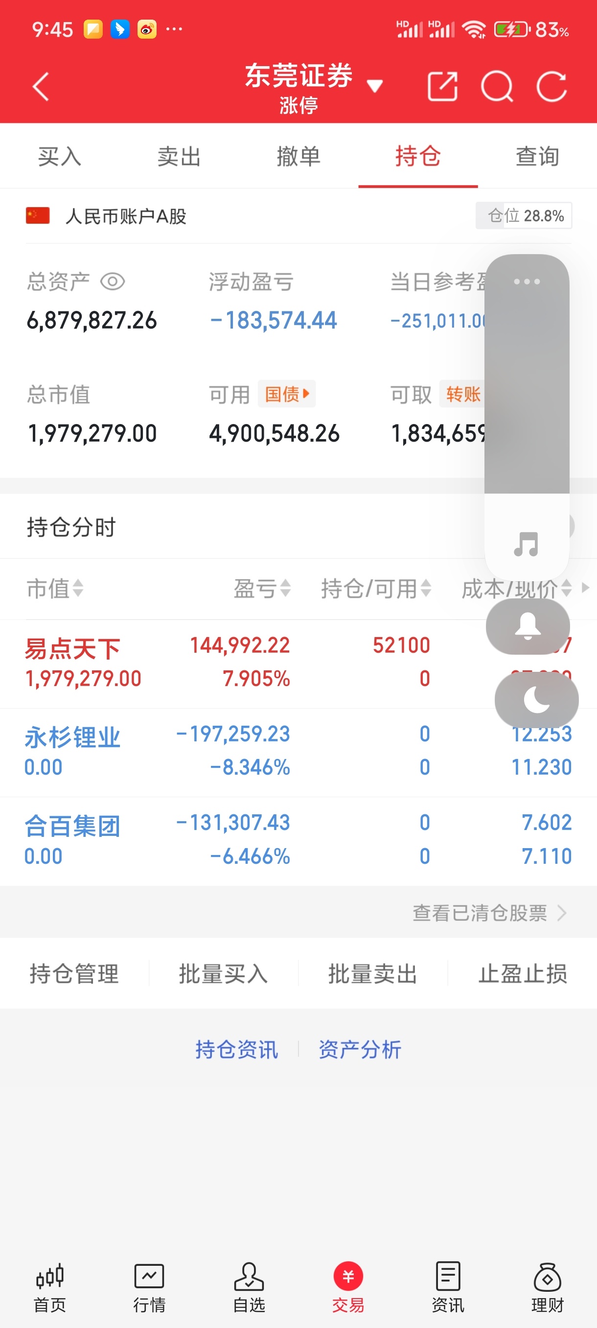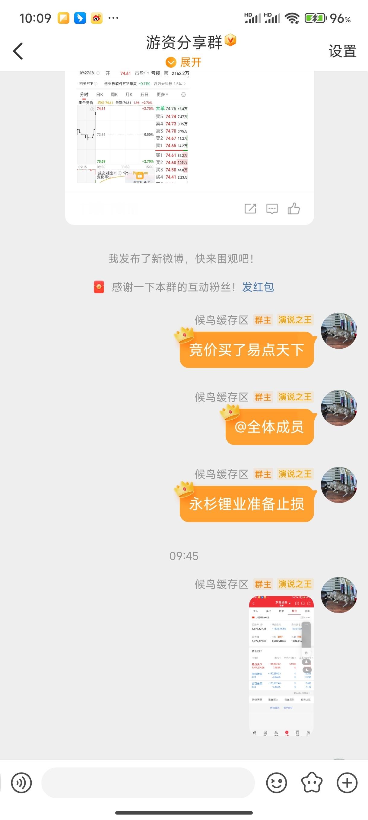 昨天买的都割肉了,包括那个永杉锂业也有割肉了,今天就开了个易点天下实盘群里面已经说了