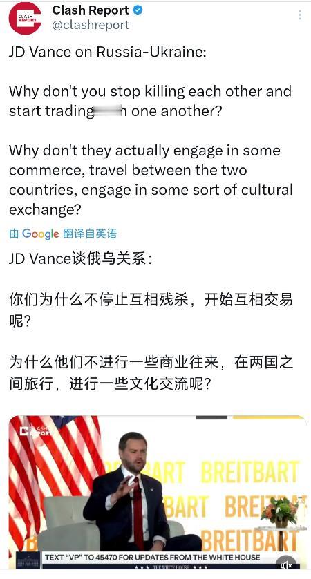 美国副总统JD 万斯今天(北京时间11月21日)谈论俄乌关系:“你们为什么不停止互相残杀,开始互相交易呢?为什么他们不进行一些商业往来,在两国之间旅行,进行一些文化交流呢?” 可稍有常识的人都清楚,美国在俄乌冲突里扮演的从来不是什么“劝和者”,而是那个在背后不断添柴加火、唯恐局势降温的“拱火者”。 如今冲突陷入胶着,无数人在战火中流离失所,美国却突然摆出一副“和平使者”的姿态,这种前后矛盾的做派,实在让人看清其虚伪的本质。 时间拨回冲突爆发前的数年,美国就一直在俄乌之间埋下矛盾的种子。北约东扩的步伐从未停歇,美国不断怂恿乌克兰加入北约,一步步挤压俄罗斯的战略安全空间。 俄罗斯多次就北约东扩问题提出合理安全关切,却被美国和北约以“主权国家自主选择”为由搪塞过去,这种无视俄罗斯核心利益的做法,本身就是在激化地区紧张局势。 2012至2014年间,美国更是毫不掩饰其对乌克兰局势的干预。 当时美国官员公然宣称“要帮助乌克兰打败俄罗斯人”,这种直白的挑唆言论,赤裸裸地暴露了美国想借乌克兰之手牵制俄罗斯的地缘政治野心。正是在美国的默许甚至支持下,乌克兰局势逐渐失控,最终为后来的冲突爆发埋下了隐患。 冲突爆发后,美国的“拱火”行为更是变本加厉。它不仅向乌克兰提供了大量的军事援助,从单兵武器到重型装备,源源不断地运往战场,还联合其盟友对俄罗斯实施了多轮严厉的制裁。这些制裁涉及能源、金融、科技等多个领域,试图通过极限施压的方式拖垮俄罗斯经济,却丝毫没有考虑到这种做法会让冲突持续升级,给两国人民带来更多苦难。 美国向乌克兰提供的军事援助,名义上是“支持乌克兰自卫”,实际上却是在把乌克兰当成消耗俄罗斯的“代理人”。 有数据显示,截至目前,美国对乌军事援助总额已经超过了数百亿美元,这些武器装备被投入战场,只会让战火燃烧得更旺,让更多无辜的生命卷入其中。美国嘴上说着“支持和平”,行动上却在不断为冲突“输血”,这种双重标准的做法,实在难以服众。 更让人不齿的是,美国在拱火冲突的同时,还不忘从中谋取私利。美国的军工复合体在这场冲突中赚得盆满钵满,大量的武器订单让这些企业股价飙升。 有分析指出,美国的一些政客与军工企业存在着千丝万缕的联系,他们从冲突中获得了巨大的政治和经济利益,这也使得美国缺乏推动停火止战的真正动力。 如今,当冲突进入胶着状态,美国看到短期内难以实现彻底拖垮俄罗斯的目标,反而可能让自身陷入长期的战略消耗,于是就换了一副嘴脸,轻描淡写地呼吁俄乌“和睦相处”。 这种“事前煽风点火,事后装无辜劝和”的操作,就像是一个人把别人的房子点着了,等火势蔓延开来,却站在一旁说“你们怎么不灭火,反而互相指责呢”,其荒谬程度可想而知。 美国副总统的言论,完全忽略了冲突爆发的前因后果,无视了美国自身在其中扮演的不光彩角色。 他避而不谈美国如何一步步将俄乌推向冲突的边缘,不谈美国如何向战场输送武器,不谈美国如何对俄罗斯实施极限制裁,反而要求俄乌两国“进行商业往来和文化交流”,这种脱离现实的“劝和”,不过是一种虚伪的表演。 真正的和平,需要建立在尊重各国主权和领土完整、兼顾各方合理安全关切的基础之上,需要有关各方秉持客观公正的态度,积极推动对话协商。 而美国作为冲突的重要推手,首先应该做的是反思自身的行为,停止向乌克兰提供军事援助,停止对俄罗斯实施单边制裁,为缓和局势做出实实在在的努力,而不是站在一旁说些冠冕堂皇的空话。 国际社会早就看清了美国的真实面目,它的“劝和”言论不过是为了掩盖其地缘政治野心和逃避自身责任。 俄乌冲突的解决,离不开包括美国在内的国际社会的建设性作用,但这种作用绝不是继续拱火或者虚伪劝和,而是要真正拿出诚意,推动双方回到谈判桌前,通过和平方式解决分歧。只有这样,才能让战火早日平息,让两国人民重新过上安宁的生活。