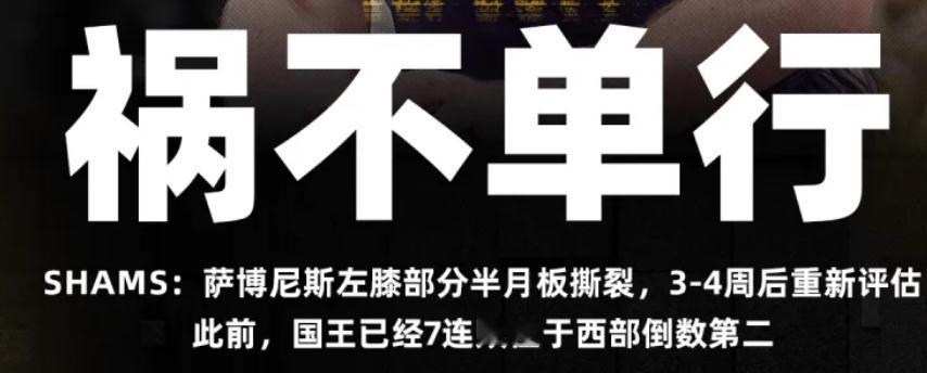 屋漏偏逢连夜雨,祸不单行啊! 国王刚刚熬过魔鬼赛程,想着,刚要转运。 可又又又来了。 Shams:萨博尼斯左膝部分半月板撕裂,3-4周后重新评估。 国王这个赛季,没了,超市大门,打开吧。 但是,开了也没用。 他们的资产,价值不大。 而能怪谁呢? 怪国王自己啊!前两年,好不容易重返季后赛,本以为说,可以重回正轨。 结果自己嚯嚯没了,球队规划一塌糊涂,交易一笔比一笔烂,选秀的眼光也也很一般。 唯一能看的,就根基。 但,打的也是一年比一年差,这未来,一眼看到头了。 国王如今大交易,重建吧!放眼未来,实在是没办法了。