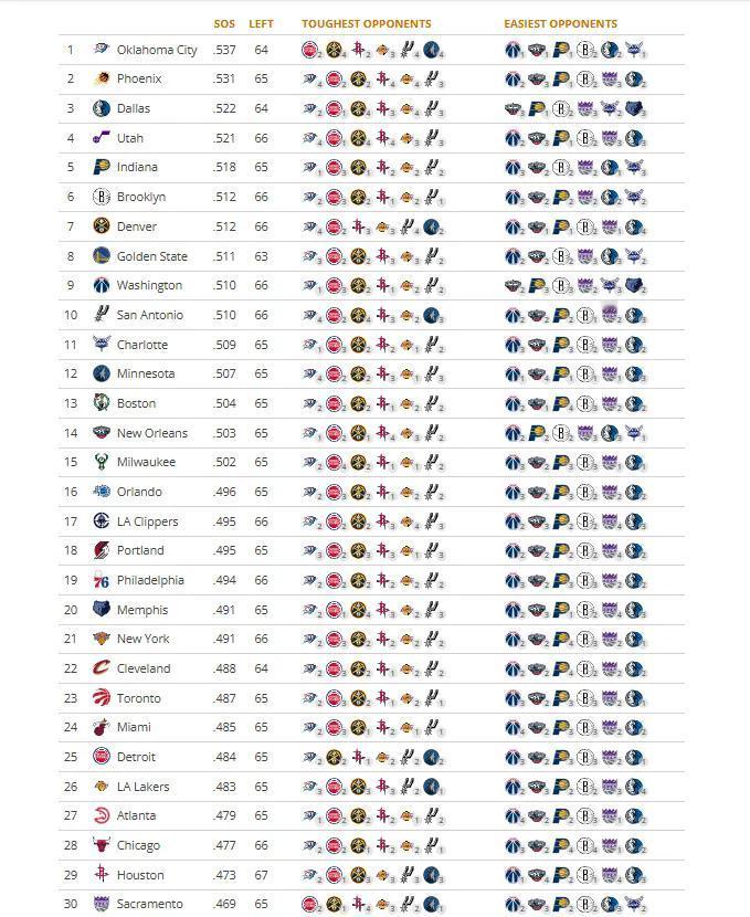 什么鬼???这榜单合理吗?科学吗? Tankathon发布各队剩余赛程难度:雷霆太阳独行侠最难,国王火箭公牛最容易! 雷霆赛程会难吗? 难的是,雷霆的对手们?如今,雷霆打谁不是碾压,如今,能给他们点压力的,就掘金,和火箭了。 独行侠如今,已经天崩的开局,还不是最难,那岂不是说,你以为他们到谷底了。 不,谷底还有一个坑。 火箭容易,的确,容易。 他们如今,冠军相,竞争力,也逐渐地凸显出来了。