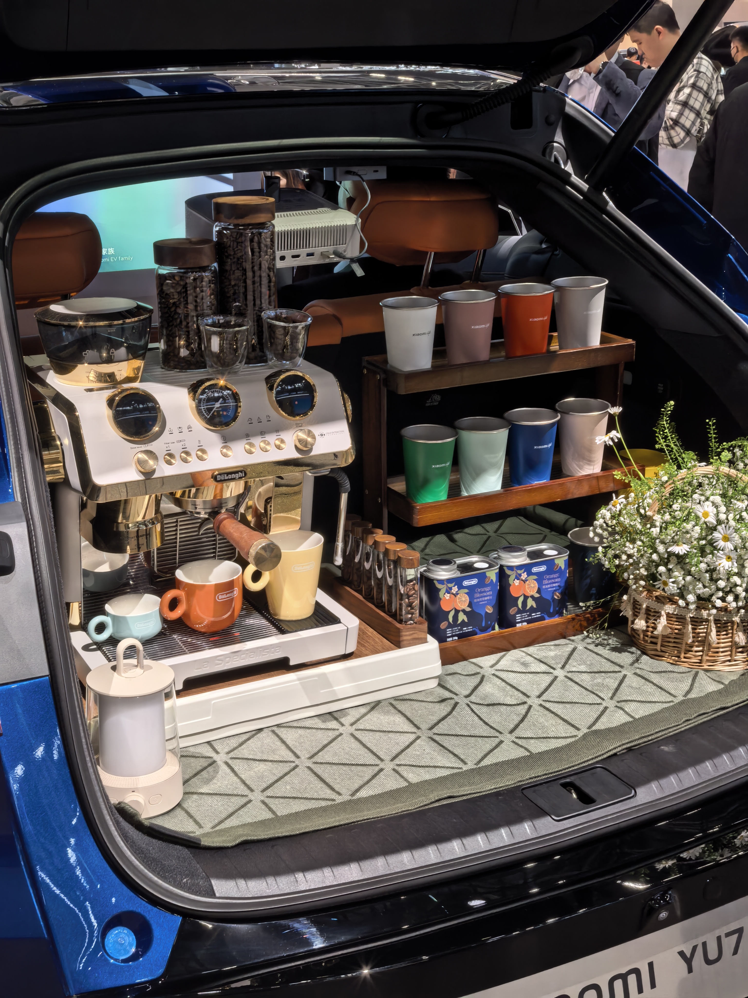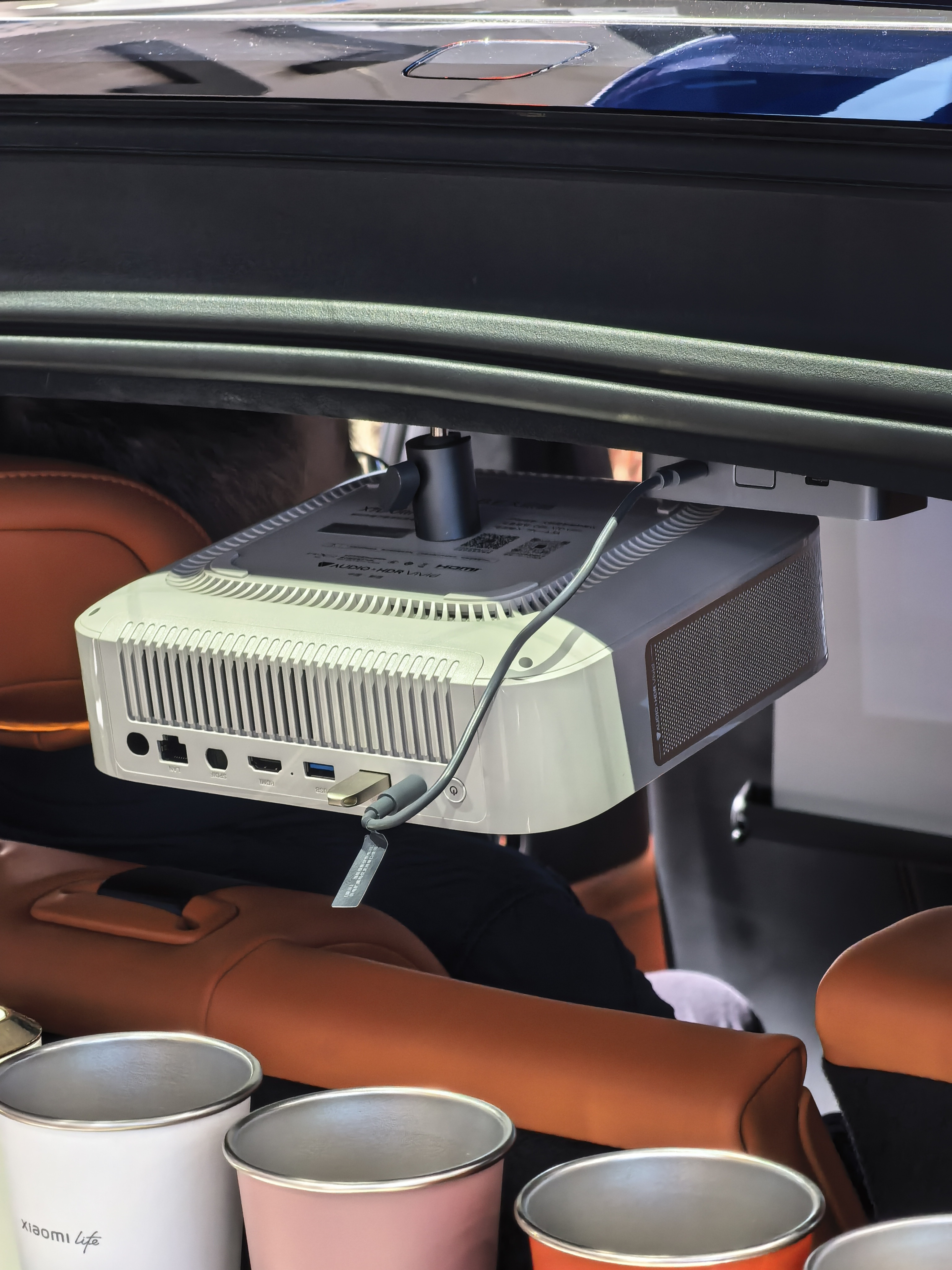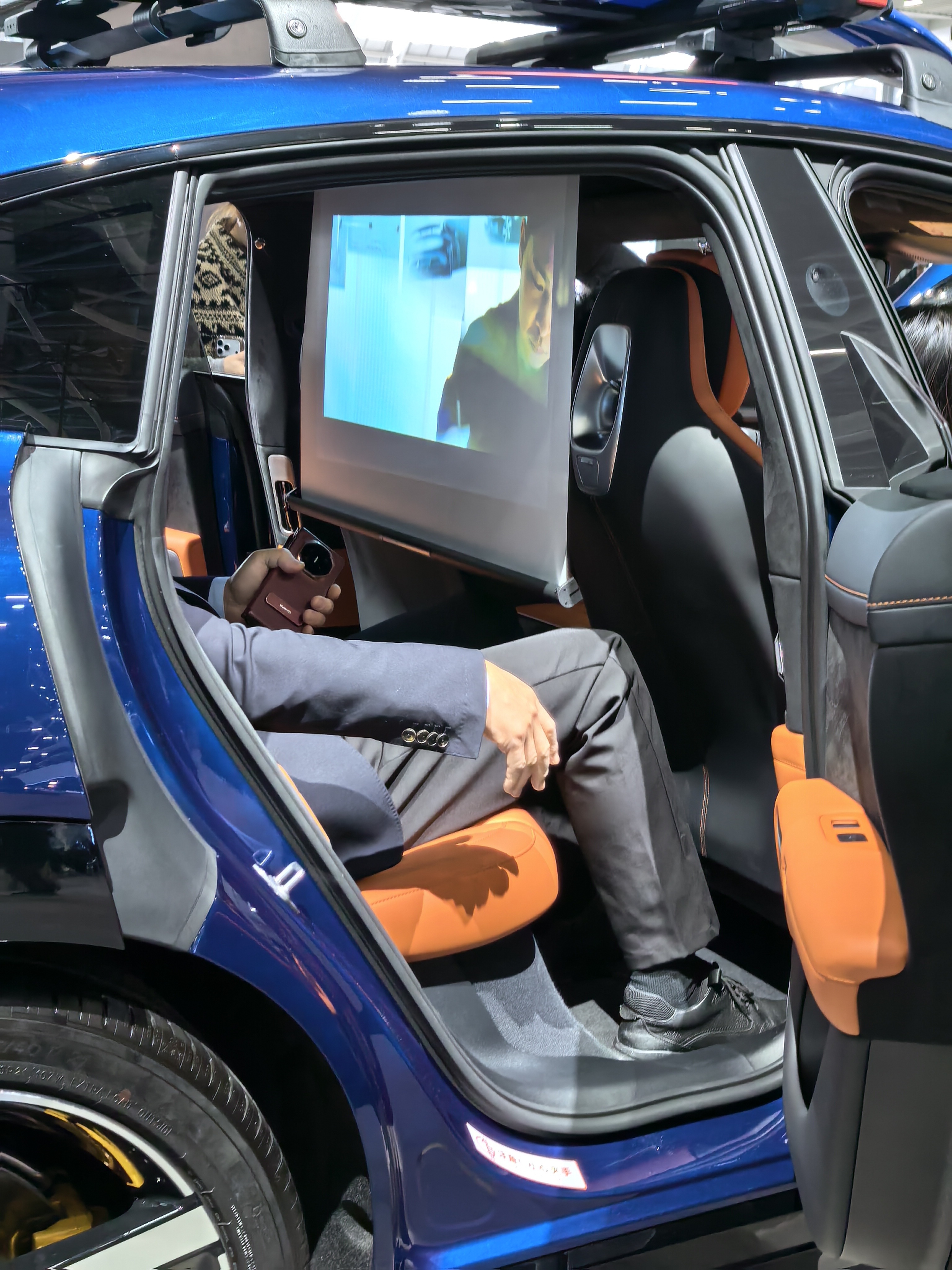 广州车展,小米展台,人也不少。最亮眼的还是这台加装很多配件的小米 YU7。特别是后排投影,直接变成大荧幕,扩展性很强