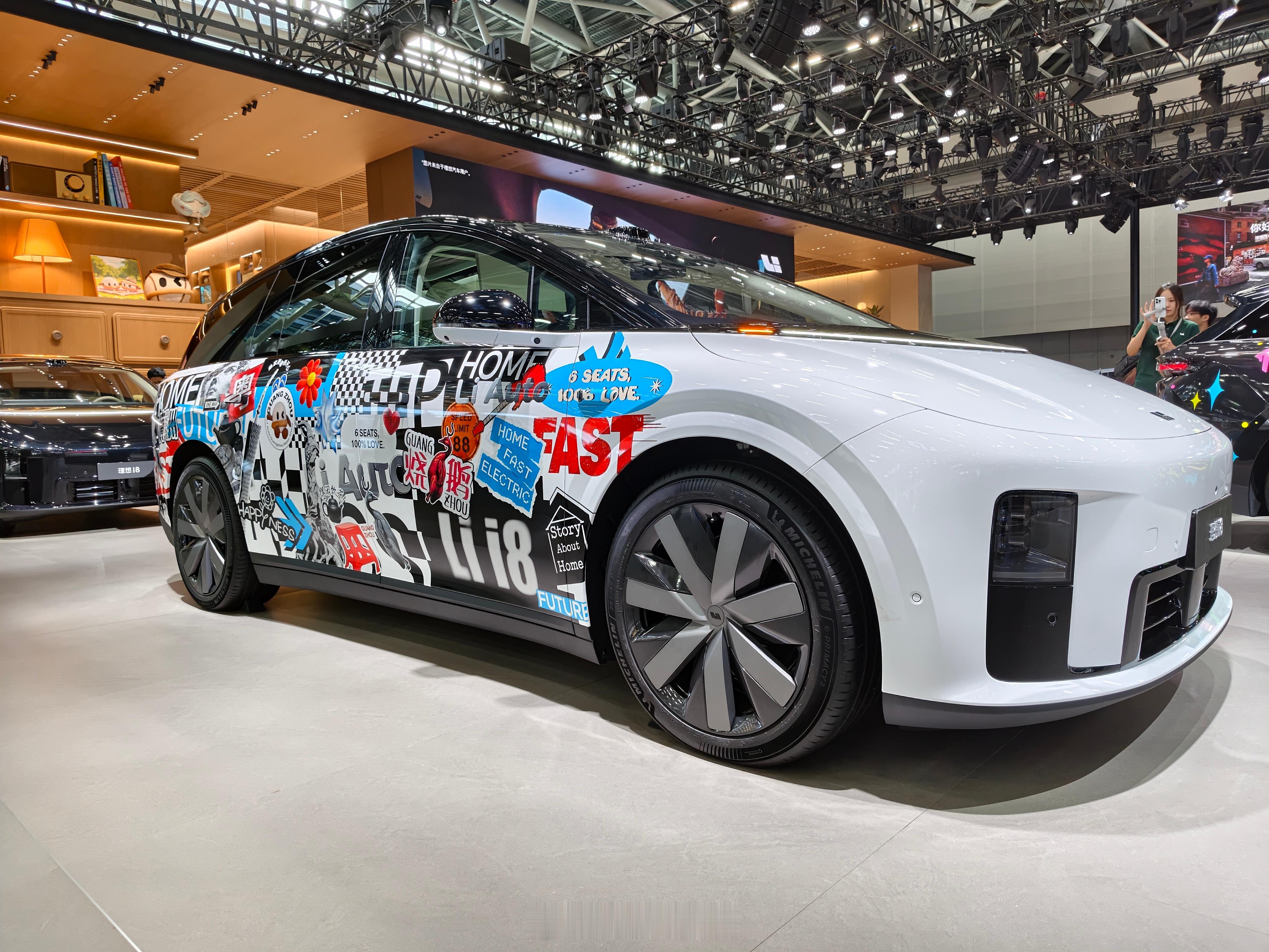 理想的展台不得不说布置的很温馨,还拍到了之前在视频里面很火的专属涂鸦版ps:来超级车间可获同款