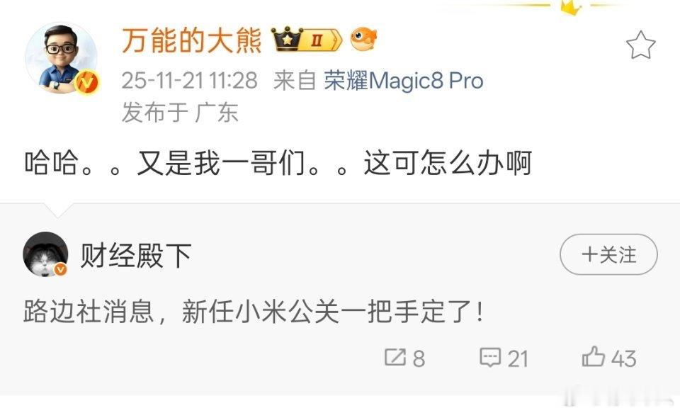 小米新的公关部总经理人选定了?是谁来接替王化呢?大熊老师说是他的一个哥们,好难猜啊。
