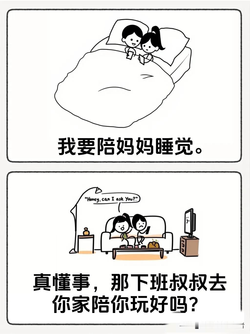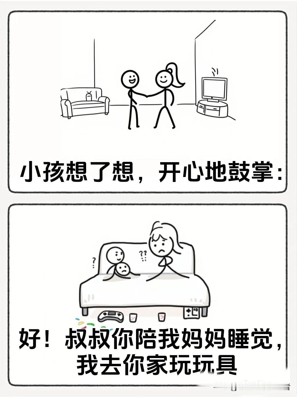 趣味漫画:女同事把儿子带单位来玩,一群人都过去逗他:今天跟叔叔回家玩好不好,叔叔家好多玩具。小孩摇摇头:我爸爸出差了我要陪妈妈睡觉。那叔叔