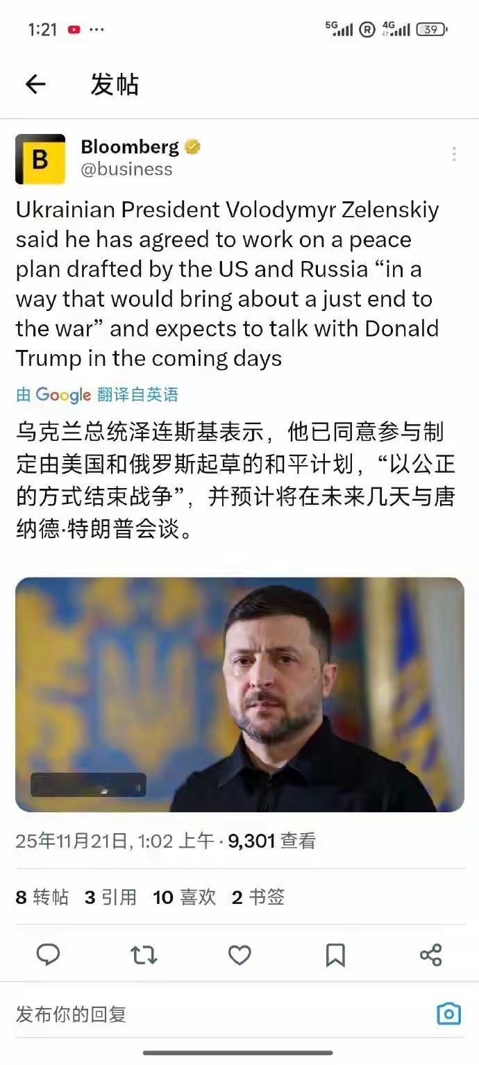 乌克兰准备接受美国和俄罗斯的和平计划。 这意味着,泽连斯基做好了投降停战的准备。 四年时间,乌克兰和欧盟得到了一地鸡毛。这就是丛林法则。