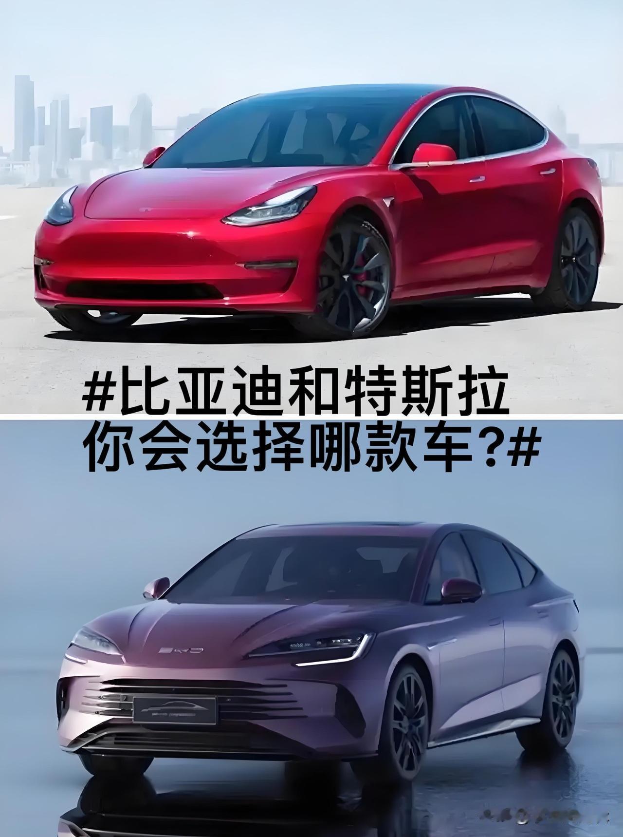 比亚迪和特斯拉你会选择哪款车? 20-30万买电车,比亚迪和特斯拉到底选谁?作为开了6年电车的老司机,实测+身边多个车主真心话,帮你把纠结说透! 其实俩车根本不是“谁更好”,而是“谁更适配”——比亚迪是“过日子的实在人”,特斯拉是“追潮流的先行者”。 选比亚迪的,多半是奔着家用省心去的:刀片电池针刺不着火,-30℃也能正常工作,冬季续航达成率86%,北方朋友不用慌。汉EV实测跑高速比Model 3多100公里,28分钟就能快充到80%,带娃出门不用蹲服务区等充电。关键保养太省钱,年均才500块,4S店送水补零食,长辈操作“小迪”语音助手也上手就会。 选特斯拉的,大多是科技控+高频跑高速:FSD智能驾驶在高速跟车、自动变道超丝滑,15分钟快充补300公里,全球超7万个超充桩,跨省出行不用愁。Model 3零百加速4.5秒,底盘扎实不飘,极简内饰+大屏交互,年轻人开出去有面儿。但要注意,单踏板模式老人可能不习惯,FSD国内没完全开放,还得花6万多选装。 最后给个实在建议: ✅ 家庭用车、充电不便、看重性价比→选比亚迪,实用配置拉满还省心; ✅ 科技尝鲜、经常跑高速、追求品牌→选特斯拉,智能和补能网络够能打。 别跟风听“谁是天花板”,按自己用车场景选,就不会错!你是家用刚需还是追科技?评论区聊聊~