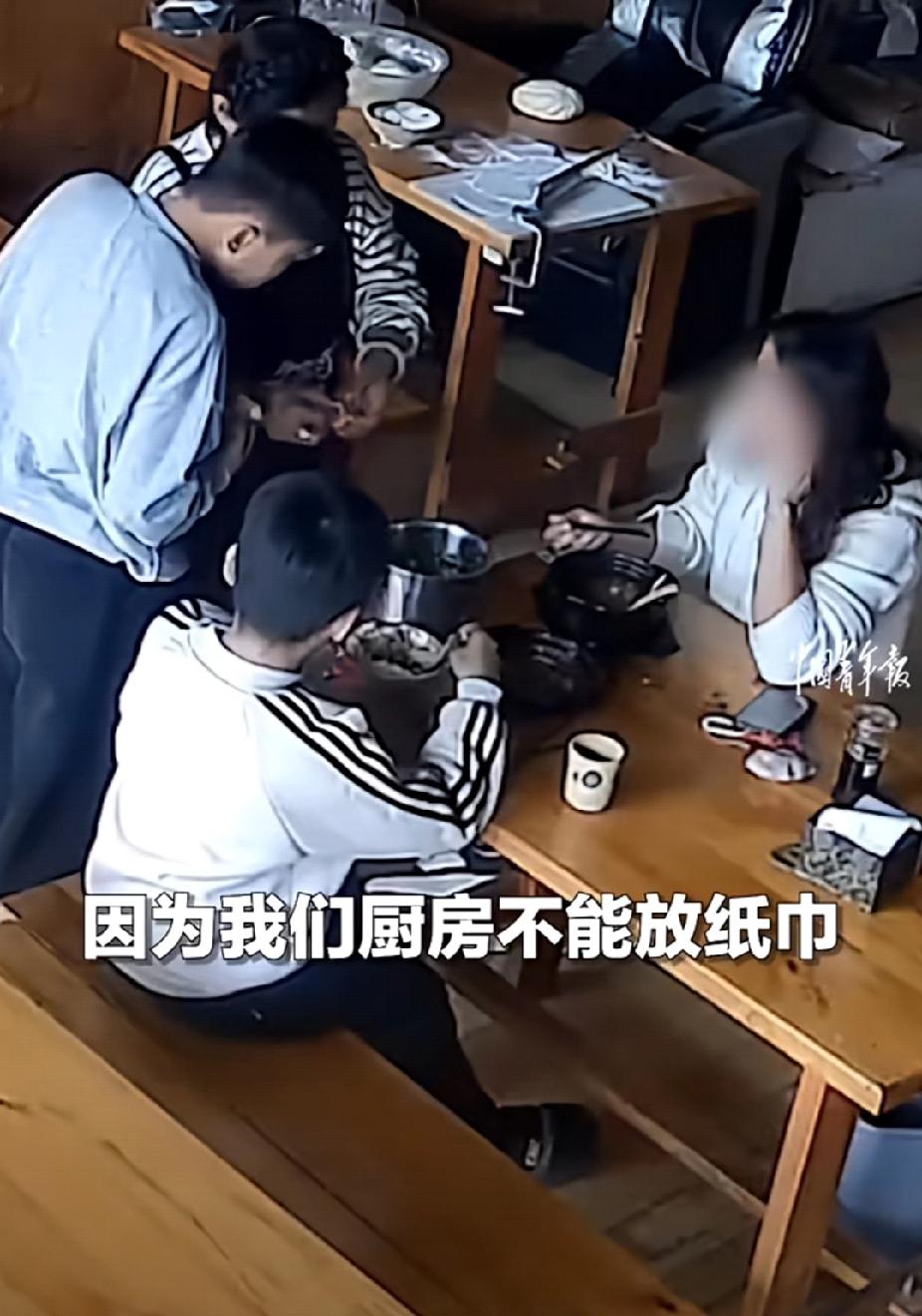 真相大白了!女子在餐馆吃出纸巾,老板娘给予免单并重新煮一份的补偿,事后查监控发现纸巾是女子自己弄进去的! 女子带儿子来这家餐馆吃饭,儿子先吃完就要跑出去玩儿。女子这时抽出纸巾擦嘴,眼睛直直盯着跑出门的儿子,没注意到自己抽出的实际是两张纸巾,其中一张就掉进了碗里。 而不知情的女子以为是老板做餐时不小心将纸巾放进了碗里,于是喊老板娘过来查看。老板娘一脸懵,因为后厨没有纸巾,老板娘也不知道纸巾从何而来。 但本着“顾客是上帝”的原则,老板娘主动提出给女子免单,并重新为女子煮了一份餐。 事后,老板娘无助地给儿子打电话,儿子查看监控后才发现:纸巾是女子专心看娃不小心弄进去的。 真相就此大白,老板娘吃了哑巴亏,女子还觉得这家店不干净。这个责任谁来承担呢?对此,你怎么看呢?吃饭吃出异物该如何维权 乌龙事件