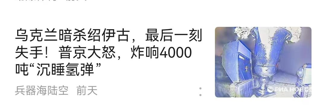 乌克兰暗杀绍伊古失败这件事,是不是特别像以色列暗杀伊朗高级领导人、科学家和军方高级人物。 这次也是,他们把炸弹装入花瓶,也是有内应,当然最后一刻失手了!俄罗斯立即开展报复,包括炸响4000 吨"沉睡氢弹"。 随即以色列和俄罗斯电话了,具体内容当然不会公布,估计俄罗斯已经警告以色列了,在情报方面,俄罗斯也很强。