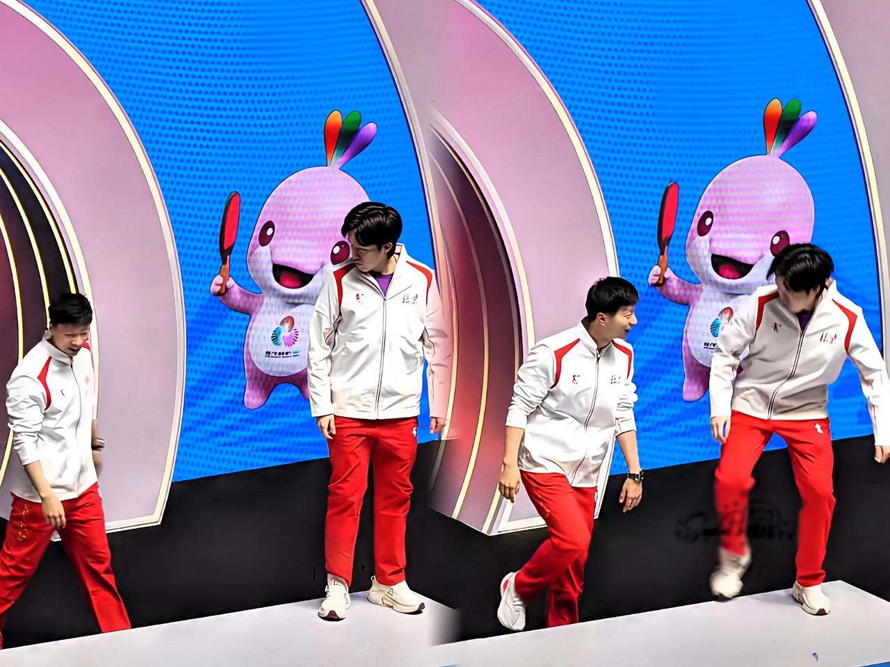 头哥可太逗了! 男团颁奖, 司仪话还没说完, 他好家伙一个箭步就窜上奖台了。 龙哥在旁边眼疾手快想给他拽下来, 结果他自个儿倒先退下来了, 这一上一下把全场都逗得哈哈大笑, 他自己也挠着头傻乐。 可我就纳闷了, 怎么一到混双颁奖, 等莎莎就成了刻进DNA里的默契, 俩人步调那叫一个一致? 头哥啊, 知道你拿了冠军高兴, 但咱这“变脸”绝活也太灵活了吧!