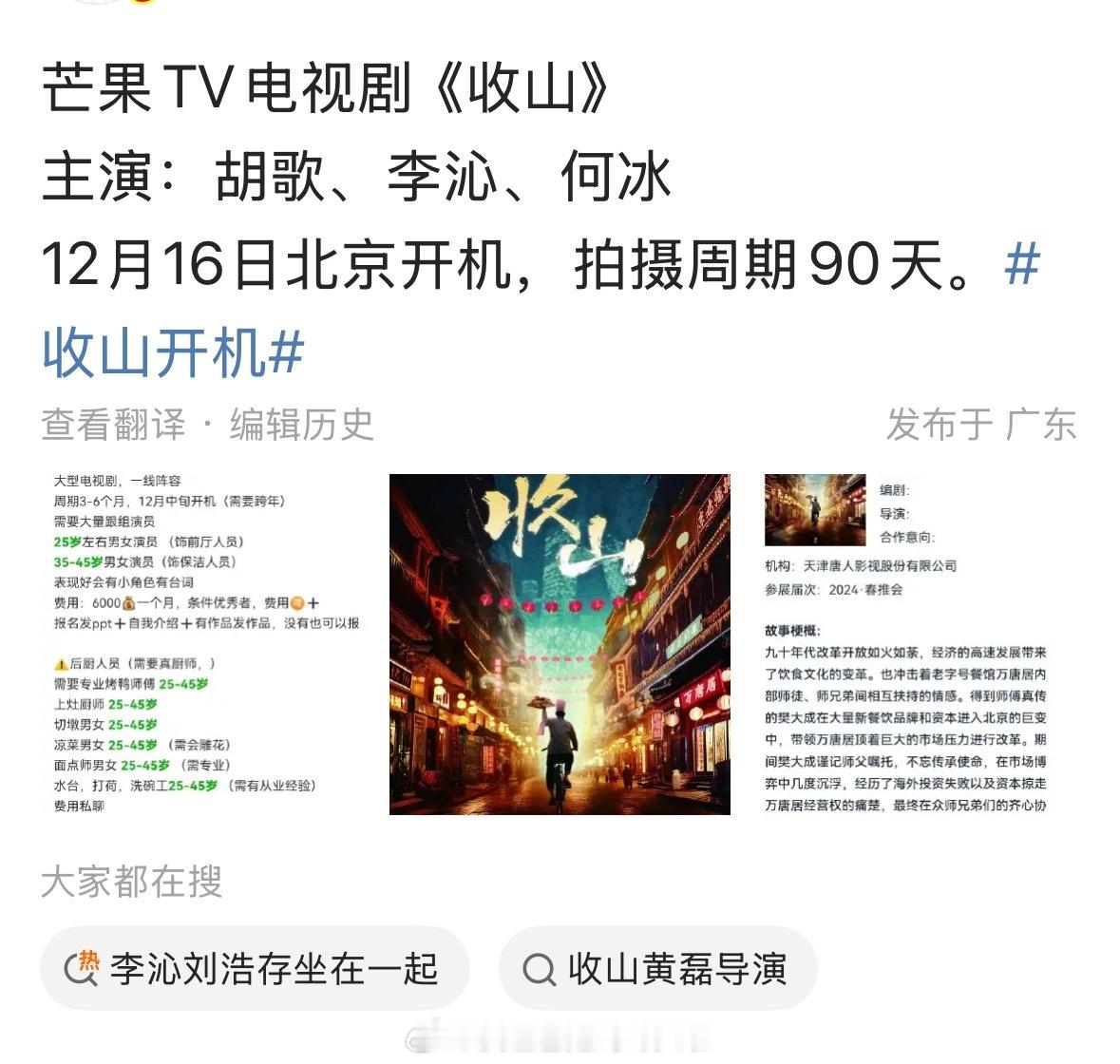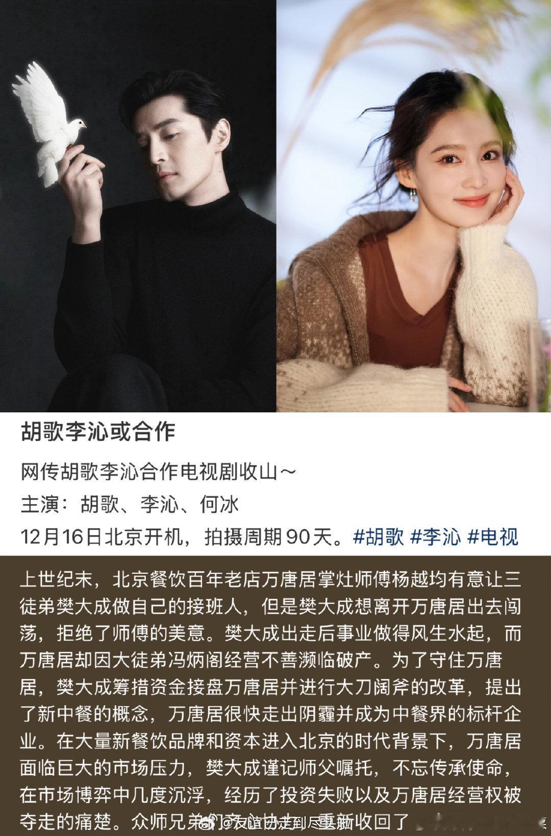 《收山》定平台🥭,唐人剧,胡歌、李沁、何冰。胡歌进张居正之前拍。虽然感觉戏份上何冰可能第二,但是李沁铁铁二番,就是不知道剧里存在感咋样了