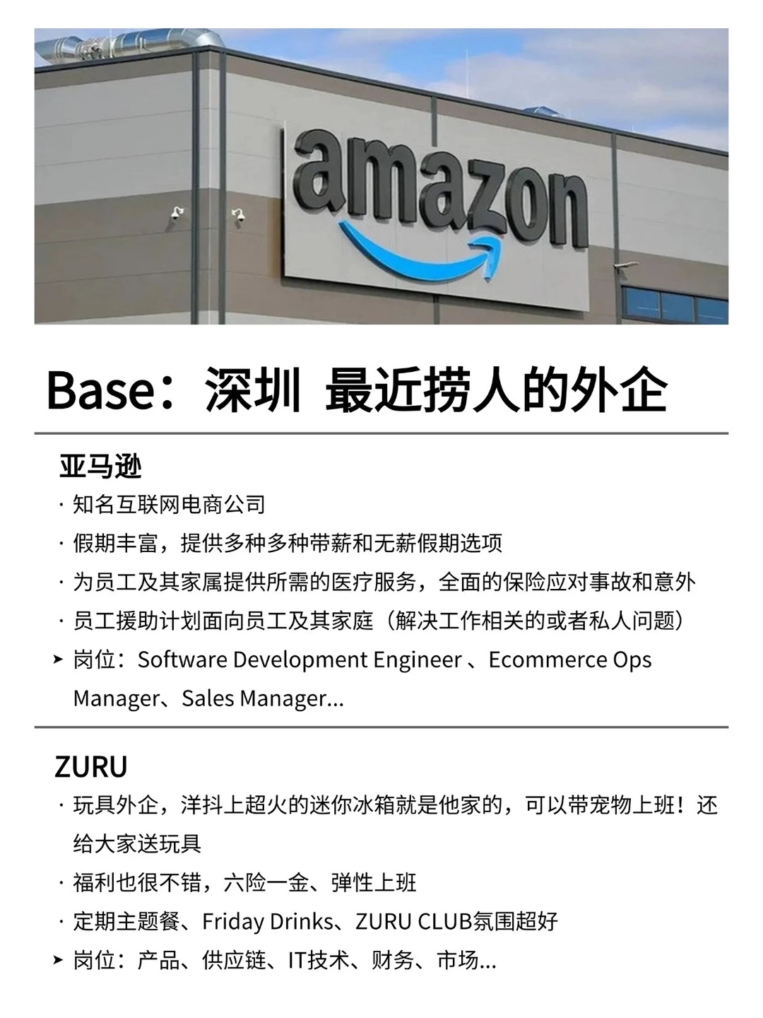 深圳一直都是外企密度非常高的城市,有不少小而美、冷门宝藏的外企,机会是真的很多的!今天给大家整理了一些最近在捞人的外企 · 为什么还是值得去外企? ✅氛围好,对女性友好,年假长,基本上都是10天起步 ✅很多还都支持居家办公、福利完善,是真的能实现WLB ✅不咋加班,待遇也还不错,想在深圳找工作的真的可以考虑考虑~ · 坚持日更✊,帮大家在找工作路上顺利拿 offer! ·