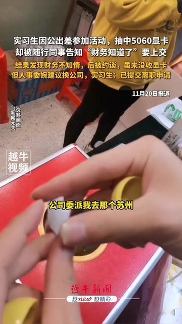 22岁实习生第一次出差,差点哭着把中奖显卡交出去! 跟着同事去活动,抽中人人想要的5060显卡,刚塞包里,同事突然拍他肩膀:财务知道了,得上交啊! 他慌得手心冒汗,跑去找财务,结果财务抬头懵圈:我没说过要收啊? 转头就被公司约谈,说影响团队氛围,虽然没没收显卡,但人事委婉劝他:换个更适合的公司吧。 有人说同事是故意坑新人,拿莫须有规则捏软柿子;也有人说公司太小气,新人中奖而已,至于逼走? 可我觉得,职场新人的善意不是软柿子!第一次想好好表现,却被同事坑、被公司寒心,规则是死的,人得有点温度吧? 如果你是他,会上交显卡吗?遇到同事假传规则坑你,你会怎么应对?公司这样处理,是不是太欺负人了?