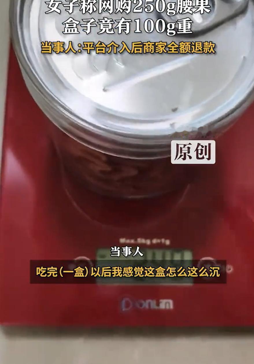 辽宁鞍山,女子网购了两盒腰果,可吃完后却觉得不对劲,拿出家里的秤一量,250g的腰果,这个包装就有100g,女子当场反应过来,这不是被骗了吗?随后找到平台介入要求退款 女子介绍,当时网购时看到腰果价格挺划算,就花20块钱买了两盒,想着平时在家看电视,聊天的时候当个零嘴吃,收到货后也觉得份量不错,可等她吃完了一盒后,发现不对劲了 她在扔空盒时,突然反应过来,这个盒子怎么这么沉?称了一下重量,瞬间明白过来,原来包装上“总重量250g”是这个意思,包装占了四成的重量,实际腰果只有150克,随后找到平台投诉,最终退款成功 有网友说:20块钱买一斤腰果,这想想就知道不现实 其实这个说法不太准确,问题关键在于,消费者并非质疑价格,而是对包装重量占比过高感到不满。这种“包装刺客”现象在网购中并不少见 包装重量本身不是错,问题是商家把这个细节藏在角落,让人误以为物超所值。很多人不是贪便宜,是默认平台上标注清晰透明,不想着防备。等吃完才发现自己其实买了半盒空气,心里那口气不是因为几十块钱,而是因为被绕了个弯 零食、干果、五谷杂粮,一旦包装做得够厚实,很多人都容易踩坑。建议日常遇到这种标注方式,养成一个习惯,多看一眼净含量,别只看表面写着多少克。净含量才是你吃到嘴里的,而总重量大多是心理安慰