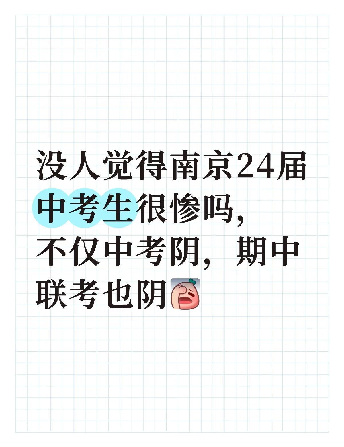 没人觉得南京24届中考生很惨吗,不仅中考阴,期中联考也阴[伤心] 期中 中考