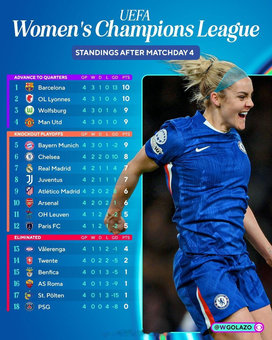 女足欧冠第四轮比赛已经结束