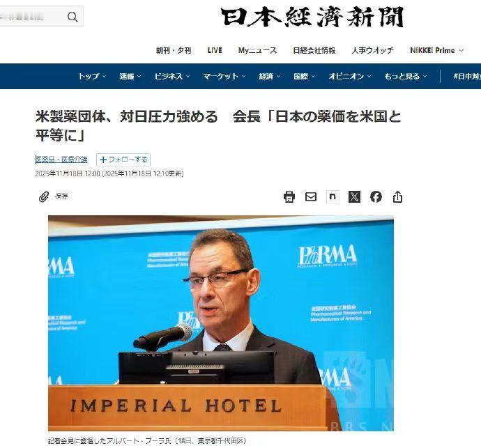 美国药价逼宫!小日本遭“中美混合双打” 美国可真的是日本放在心尖尖上啊!贸易代表署拿着放大镜对日本展开了“全领域审视”,10月底高市早苗那份丧权辱国的让步,并没有让老美爽,可不,卖国清单上,再添新物项。 美国制药团体又下通牒:日本药价必须向美国天价看齐!说白了,就是逼日本医保给美国药企巨额输血。 大侄子信一心期盼“美日澳台”围堵中国的大戏没等来,反倒亲眼目睹日本先被“中美混合双打”——美国在贸易上往死里薅,中国在战略上步步紧逼。 要为小日子洗白、洗靓,大侄子们这活干得可真不容易! Source: X