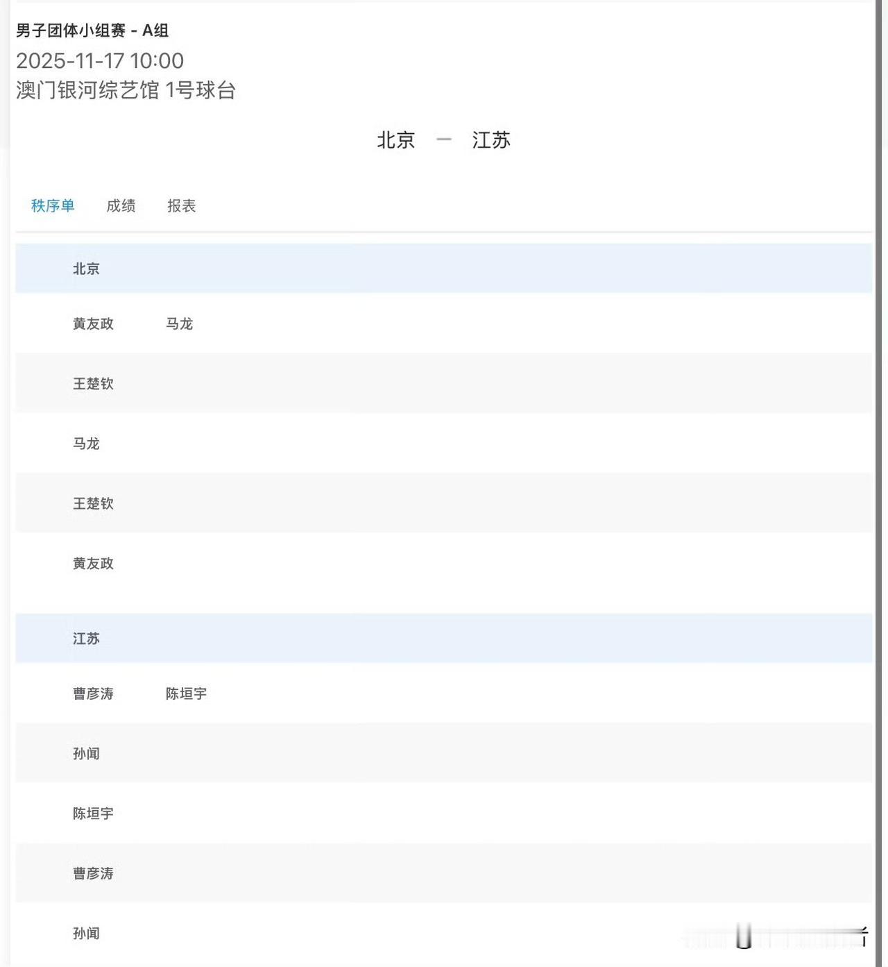 全运会乒乓球男团17号上午场的对阵公布了,既有情理之中也有意料之外。 我们看一下