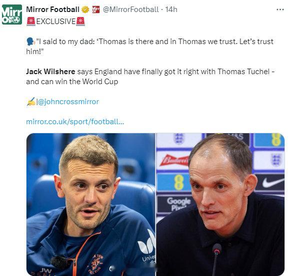 威尔希尔表示,英格兰终于找到了托马斯·图赫尔,他能够赢得世界杯。我对爸爸说:托马斯在那里,我们信任托马斯,让我们信任他!