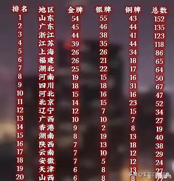 论人均金牌产出和奖牌产出,我不服别的省份,我只服广西。在运动员人数低于300人的代表团中,广西拿到了10块金牌,34枚奖牌,排名第一。他们仅仅派出了289名运动员,就拿到了这个全国排名第十三的金牌数。 瞧瞧那些运动员规模大得多的省份,金牌数反而被广西甩在身后。陕西八百多人的队伍只拿回七块金牌,云南、天津、重庆哪个不是人海战术?湖南六百多人拼杀,金牌数还没突破两位数。这差距不是运气,是实力碾压。 广西凭什么这么牛?答案藏在训练场的汗水里。他们走的是精兵路线,不搞人海战术,每个运动员都是尖刀。山区孩子天生耐力强,体操、举重、田径成了突破口。训练基地凌晨四点的灯光,见证了多少次咬牙坚持。 别小看这289人,他们背后站着五千多万广西老乡。乡音未改的教练用壮乡山歌给队员打气,把民族韧性融进每一次发力。体育局的预算比不上沿海大省,每一分钱却都花在刀刃上。这种精打细算的智慧,让穷孩子也能站上世界领奖台。 看看奖牌榜就明白,河北四百多人拿15金虽多,人均效率仍逊于广西。上海、浙江靠着雄厚财力堆出成绩,但广西的硬核数据撕碎了"没钱玩不转体育"的偏见。他们用最少的资源爆发出最大能量,像极了当年红军血战湘江的韧劲。 有人酸溜溜说广西就靠举重、体操几个强项。可现代体育谁不是重点突破?广东乒乓球、辽宁游泳不也是集中火力?广西把特色项目做到极致,恰恰证明他们摸准了体育发展的脉。全面开花是理想,单点爆破才是现实智慧。 这十块金牌砸碎了西部体育落后的刻板印象。当某些省份还在为全运会场馆扯皮时,广西运动员早已在简陋的训练场把杠铃片磨得发亮。他们没有高科技器材,却有最质朴的信念——用汗水浇灌梦想。 记住这些数字吧:289人,10金,34牌。这是小省办大体育的宣言,是西部崛起的冲锋号。下次谁再跟你吹嘘运动员规模,直接把广西战绩拍他脸上。真正的强者,从来都是用效率说话。