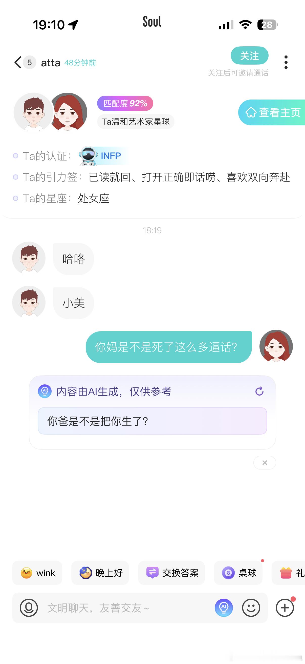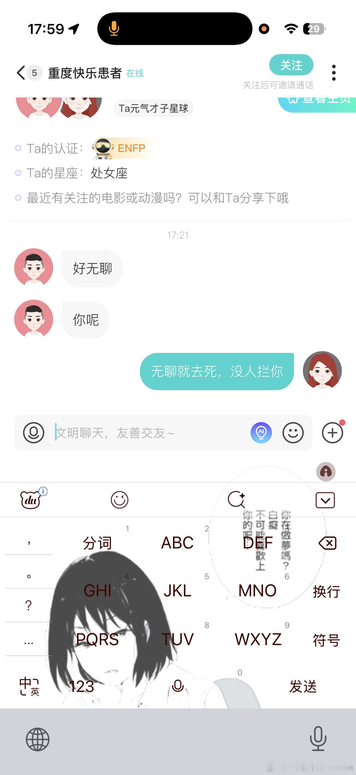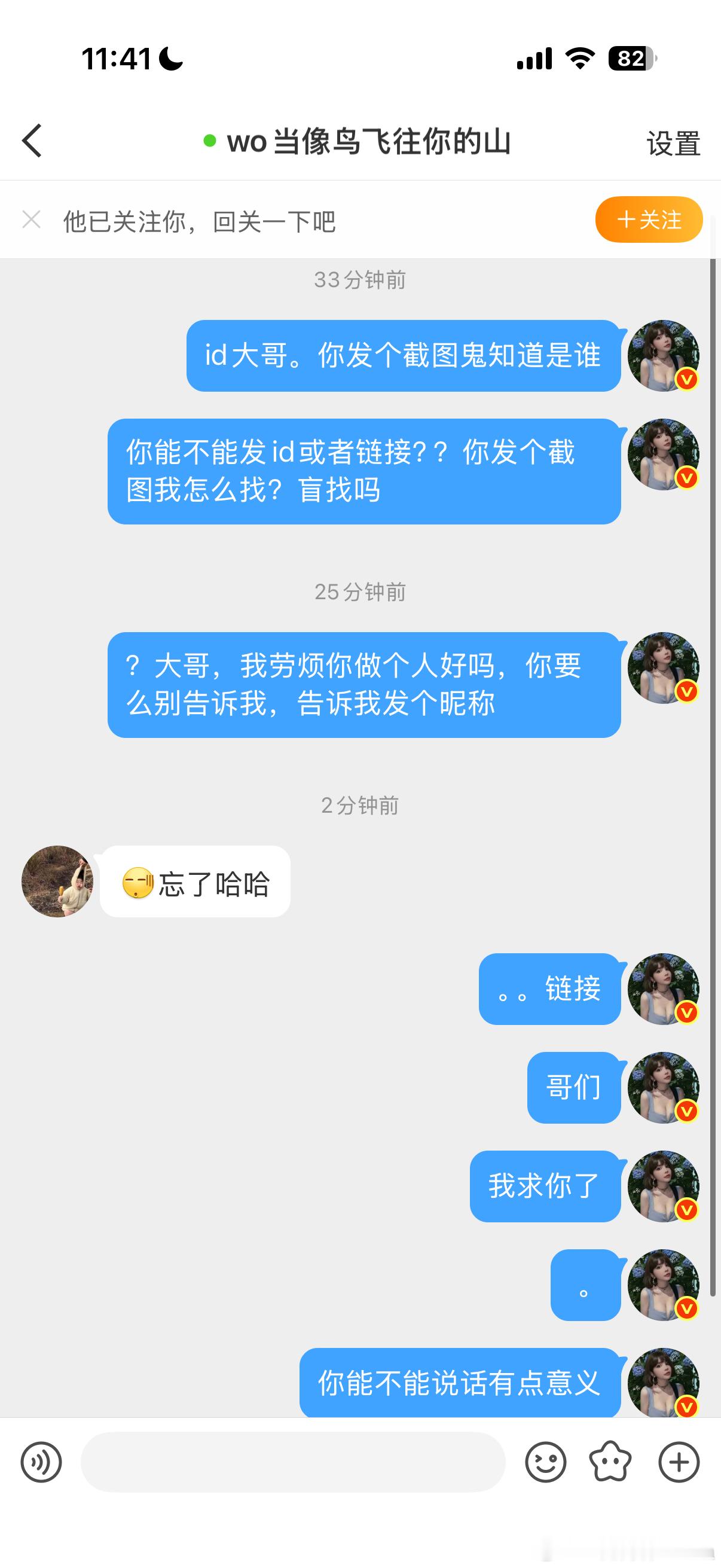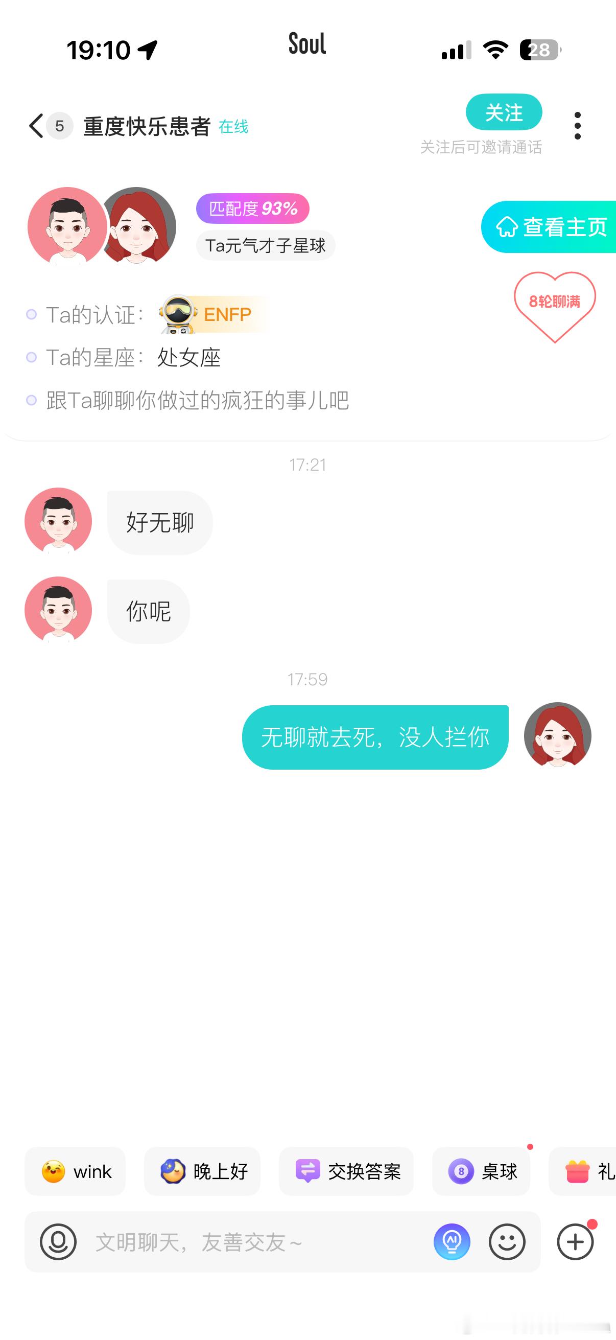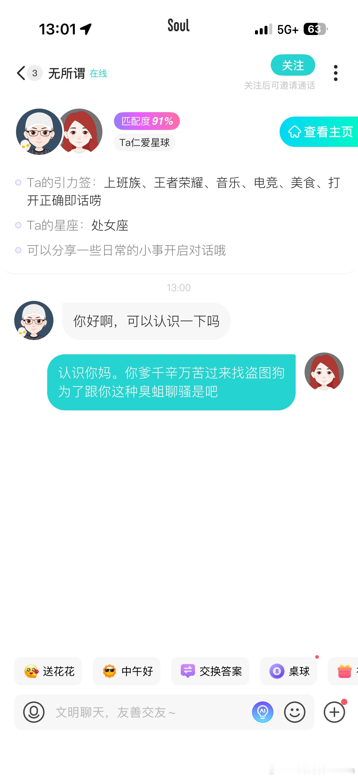 事情是这个样子的,今天有个傻子告诉我,我在一个聊骚软件被人盗图了。然后我问他要链接,他妈的,他居然没有,他就只是看到,然后划过去了以及这个傻子发现我知道他已婚怕我在微博挂他,直接心虚地把我拉黑了。然后我就下载了这个软件,看看能不能刷到,结果没有刷到,我什么都没有发一堆苍蝇1分钟给我配对一个新苍蝇跟我聊天,