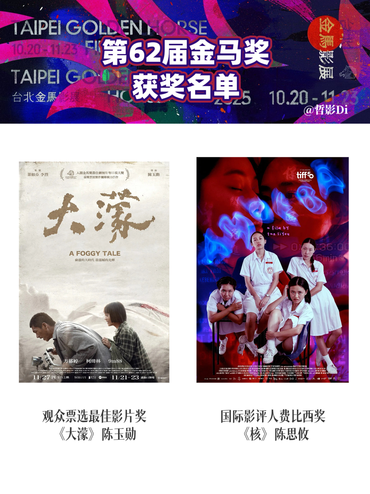 第62届公布两大场外奖项,观众票选最佳影片奖和国际影评人费比西奖获奖影片。观众票选最佳影片奖:《大濛》陈玉勋国际影评人费比西奖:《核》陈思攸
