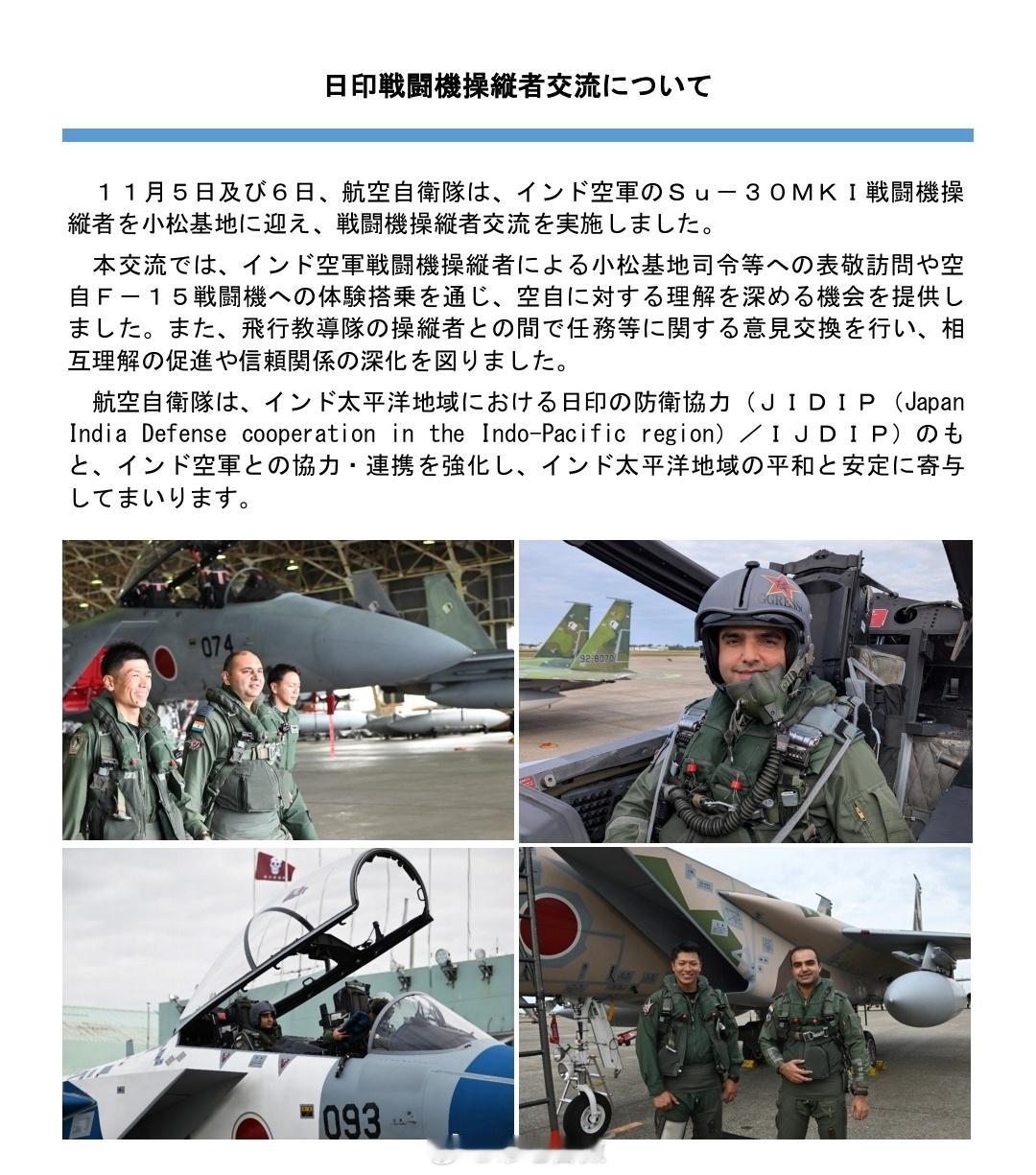日本又开始虚张声势的炒作,称近日印度空军苏30MKI飞行员赴日本小松基地,充当假想敌模拟东大空军的歼-16。⭐印度飞行员头盔上印有红色五角星,中间还有个汉字“侵”,驾驶苏-30MKI战斗机与日本F-15J/DJ“鹰”式战斗机进行了飞行对抗演练。⭐这明显就是当做假想敌了,不过日本显然打错了算盘,印空军的苏-30MKI与歼-16除了外形相似外,性能相差十万八千里,日本此举纯粹是虚张声势的自嗨。