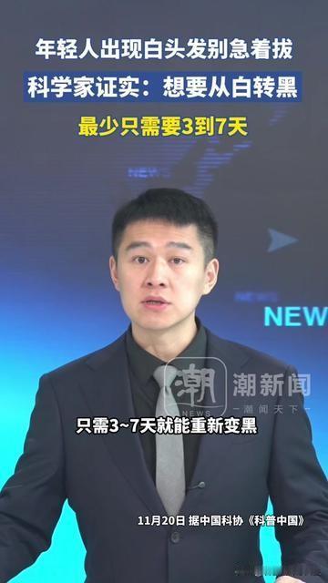 早上赶地铁扎高马尾,邻座阿姨突然问:“姑娘今年三十几?”我低头一看,发缝里两根白头发!当场脚趾抠得能抠出三室一厅! 上周还跟闺蜜吐槽“95后要染头遮白头发”,结果今天刷到个研究:年轻人的白头发居然能自己转黑?最快3天? 有人说“不可能,我白头发半年都没消”,也有人说“我上月赶方案熬夜到凌晨,头顶那根白头发,休息一周真变灰了”。 咱们年轻人的白头发大多是临时罢工!熬夜、压力大让黑色素细胞累瘫了,停折腾给它3-7天,就能重新产黑,根本不用拔,更不用花大几百染! 谁没为几根白头发慌过?怕相亲显老、怕同事调侃“少年老成”、连高马尾都不敢扎。。现在才知道,这些临时白头发就是个累出来的小插曲! 你们有没有过熬夜/压力大长白头发,后来悄悄变回来的?大家怎么看?