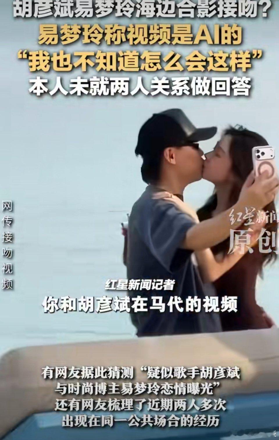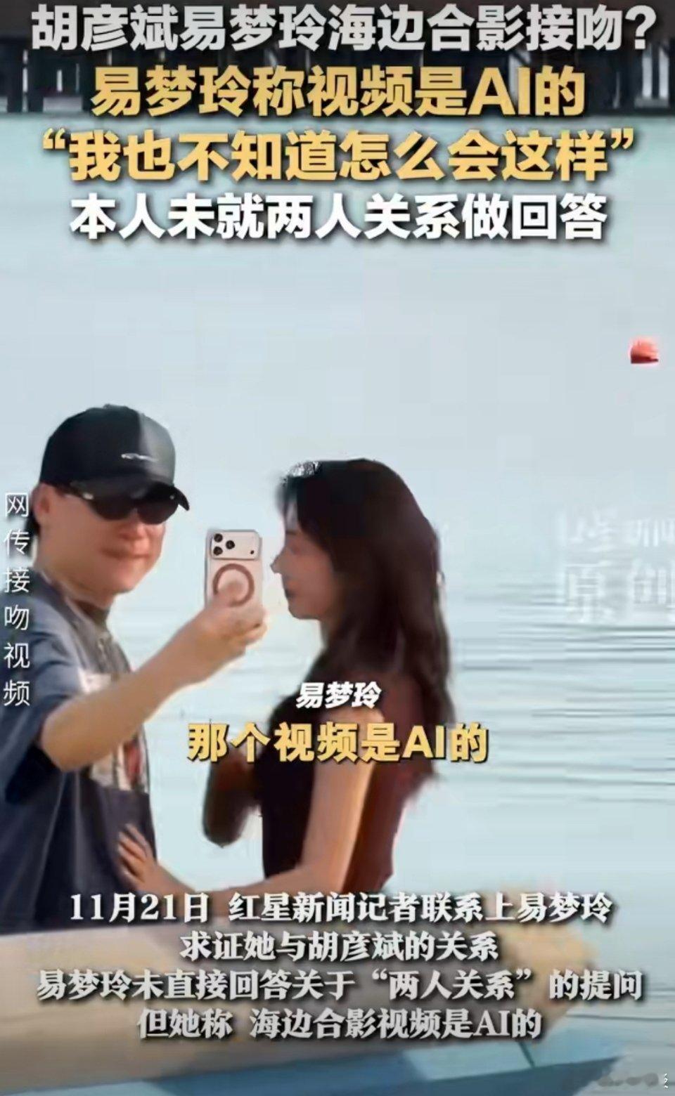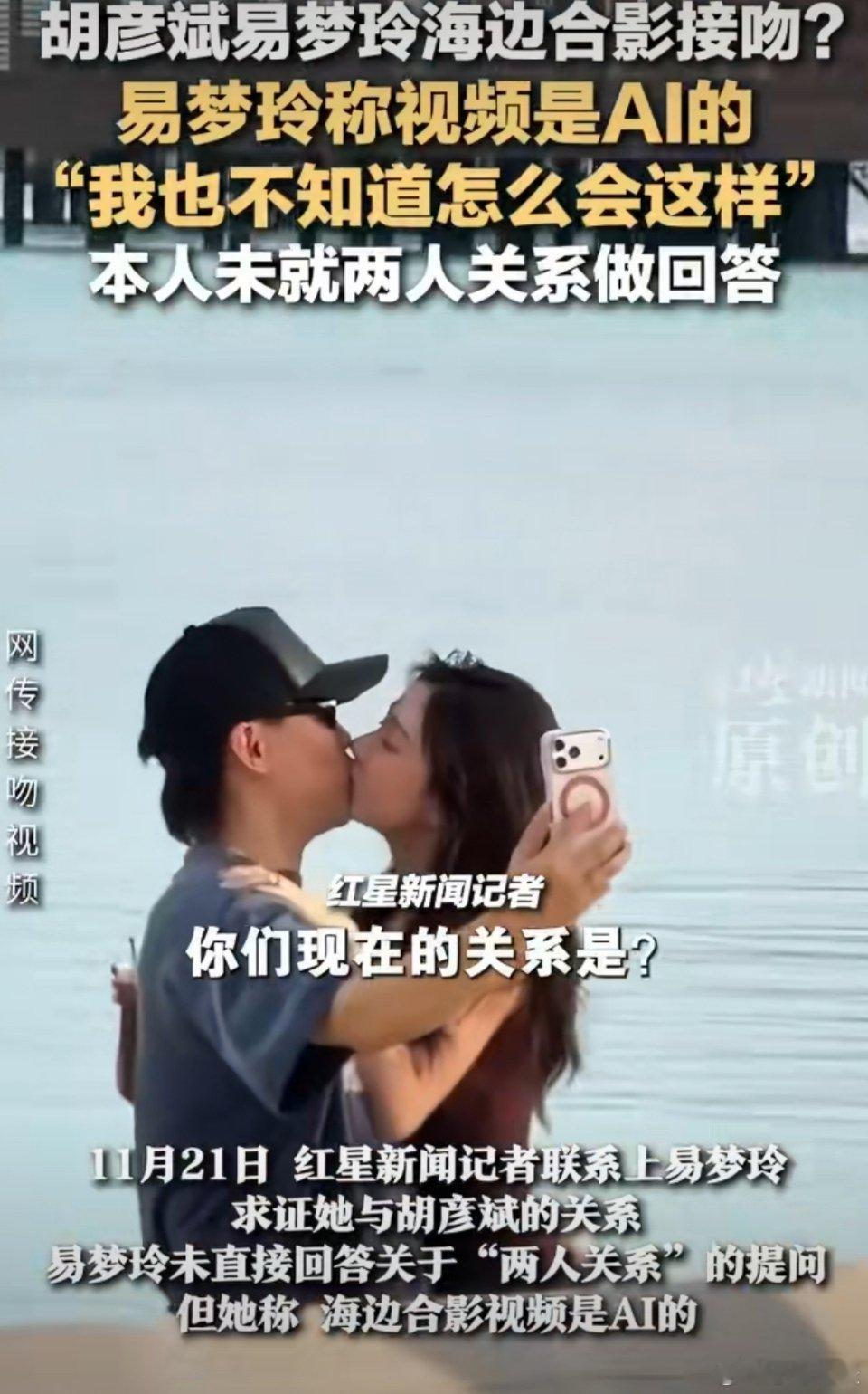 这两天易梦玲和胡彦斌海边拥吻的视频热度火爆,网友们纷纷猜测两人正处于热恋,然而这么火爆的热搜,视频中的两个主角却没有任何回应,有记者打电话咨询了易梦玲,结果易梦玲称视频是ai制作,不是真的!