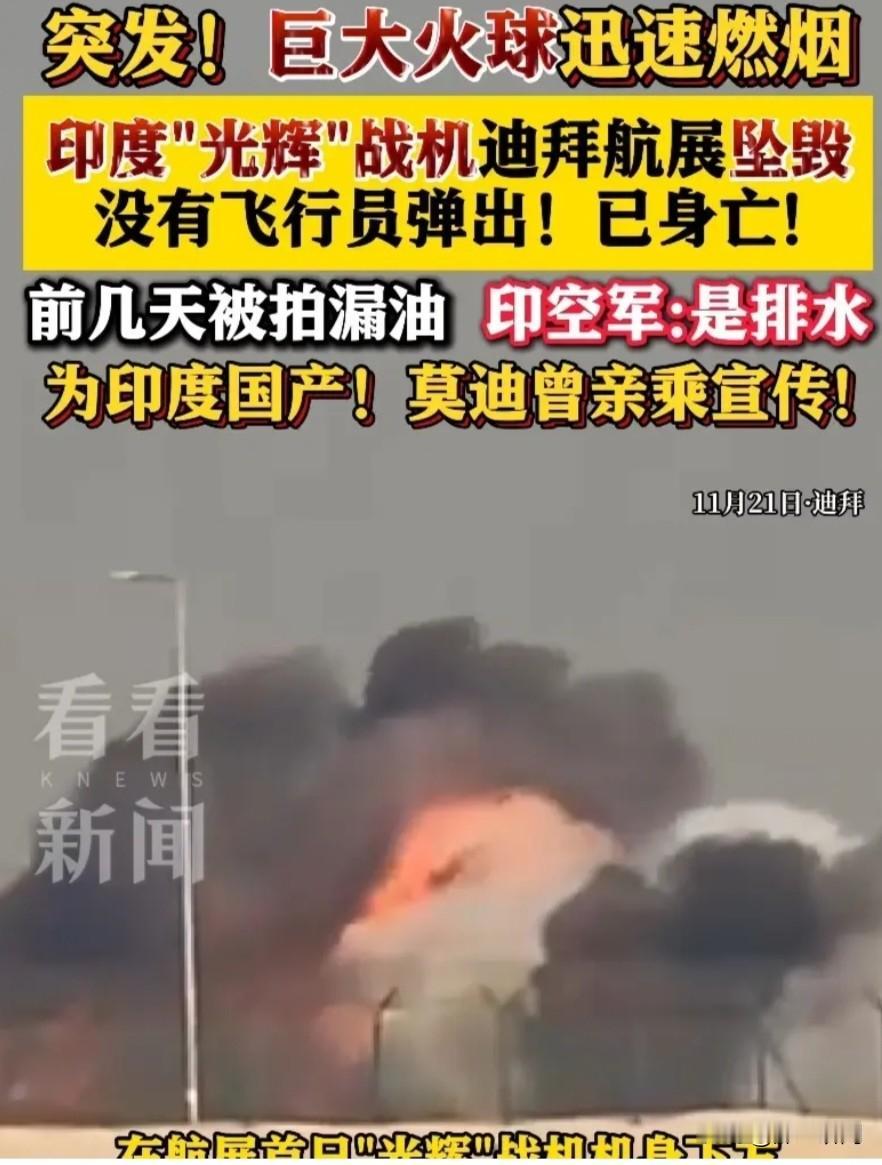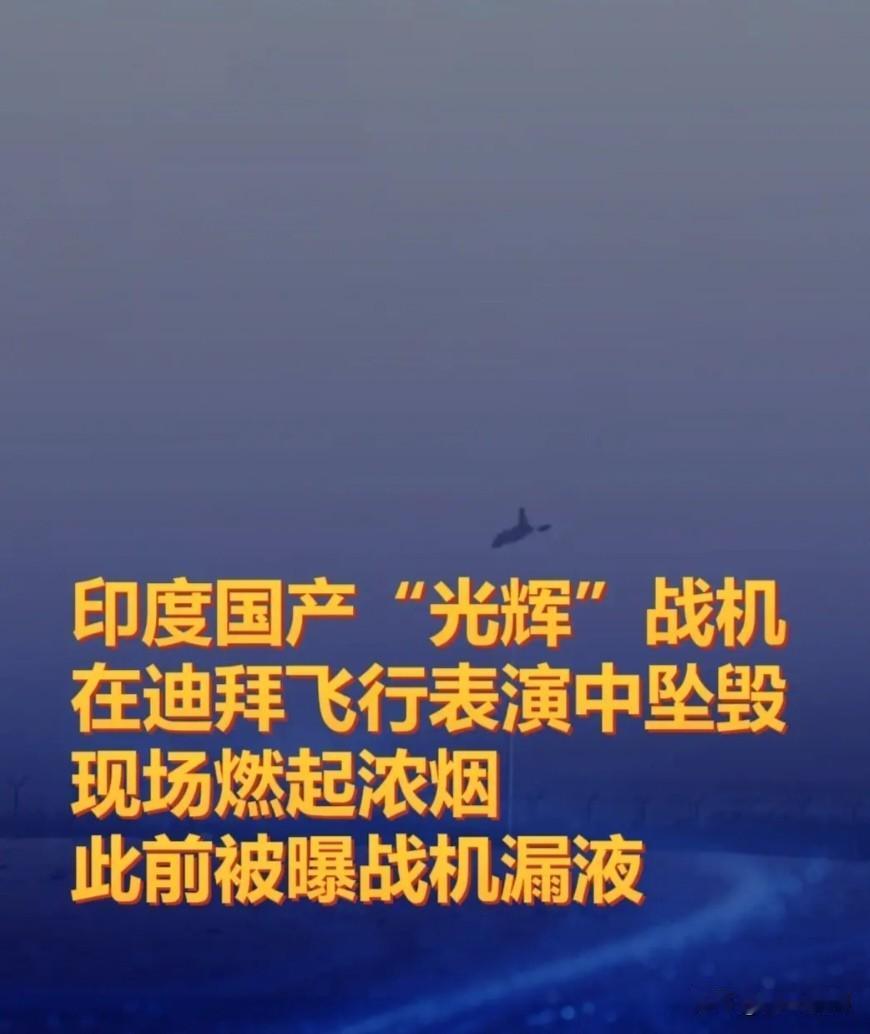 印度国产光辉战机坠毁迪拜航展,飞行员没事吧?有网友评价:人人都不看好你,偏偏你还是如此自信。 11月21日,阿联酋迪拜航展最后一天,印度国产“光辉”战机在飞机表演,本来想着露一手,展现一下实力,没想到还是坠毁了。 三哥不是号称世界第三吗?此前被拍漏油,现在又,不出意外的还是出了。 印度还是一如既往的迷之自信啊,肯定觉得别人行自己就一定行,没想到… 大家怎么看呢?