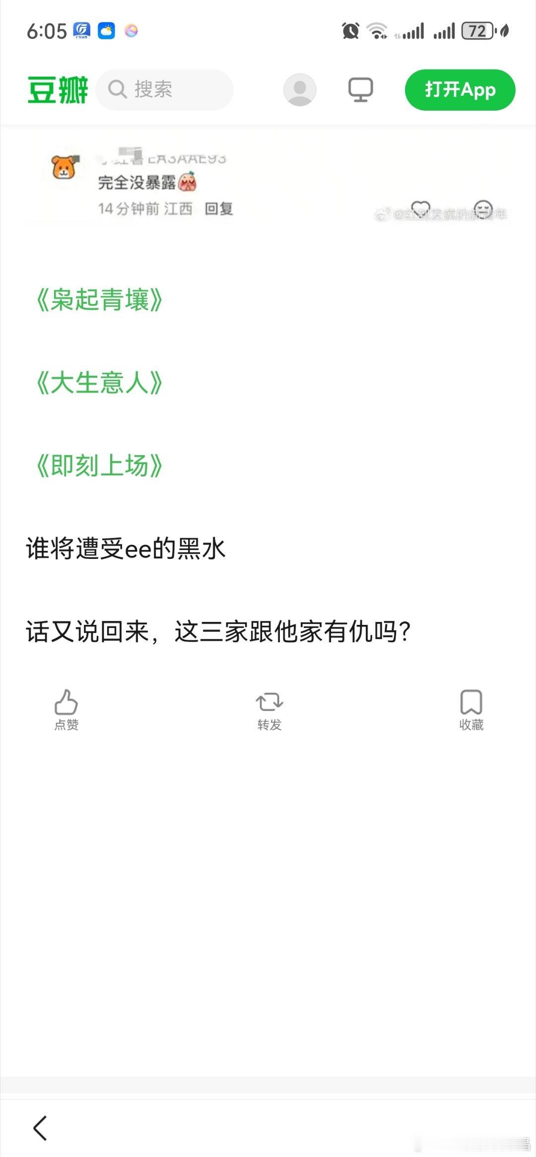 按照她自己19号的逻辑,老e今年的剧播的不好,拿不到好的奖,所以不去了,后面是挽
