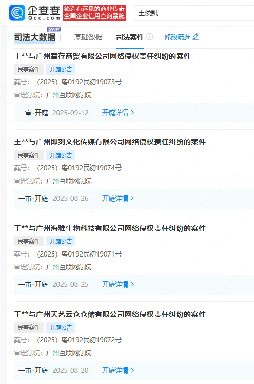 【】11月21日, 发布有关 名誉维权案件相关进展。除表格所列案件外,仍有部分王俊凯的名誉维权案件正在处理中。企查查APP显示,此前,王俊凯已起诉多家公司侵权。