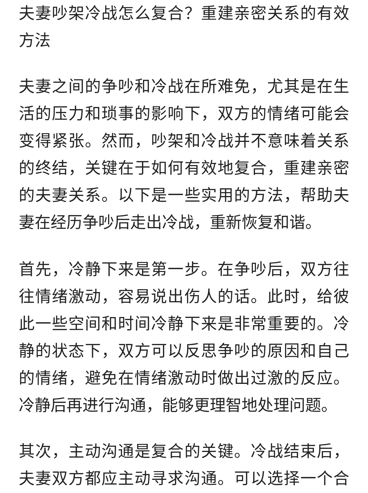 夫妻吵架冷战怎么复合?重建亲密关系的有效方法