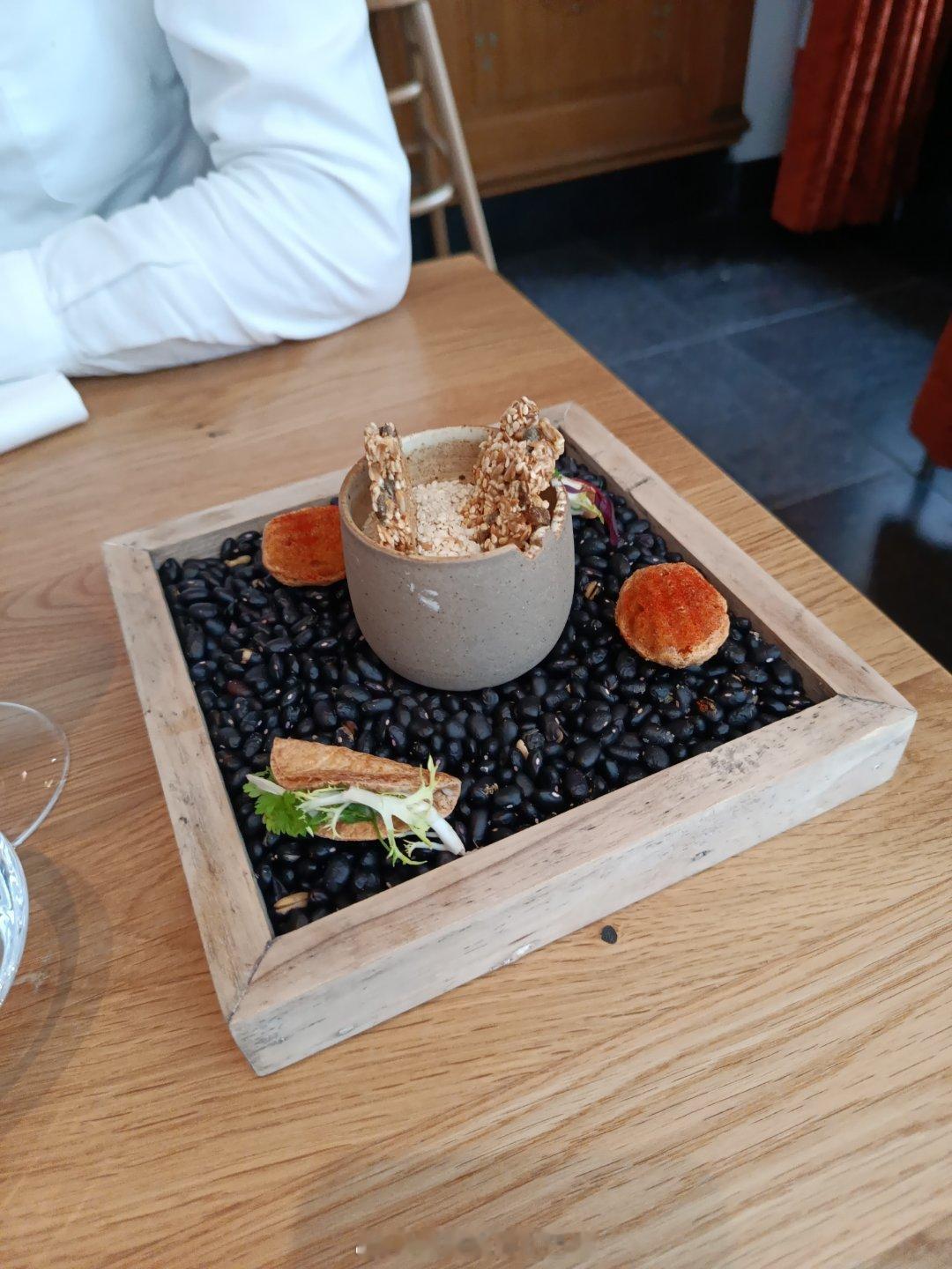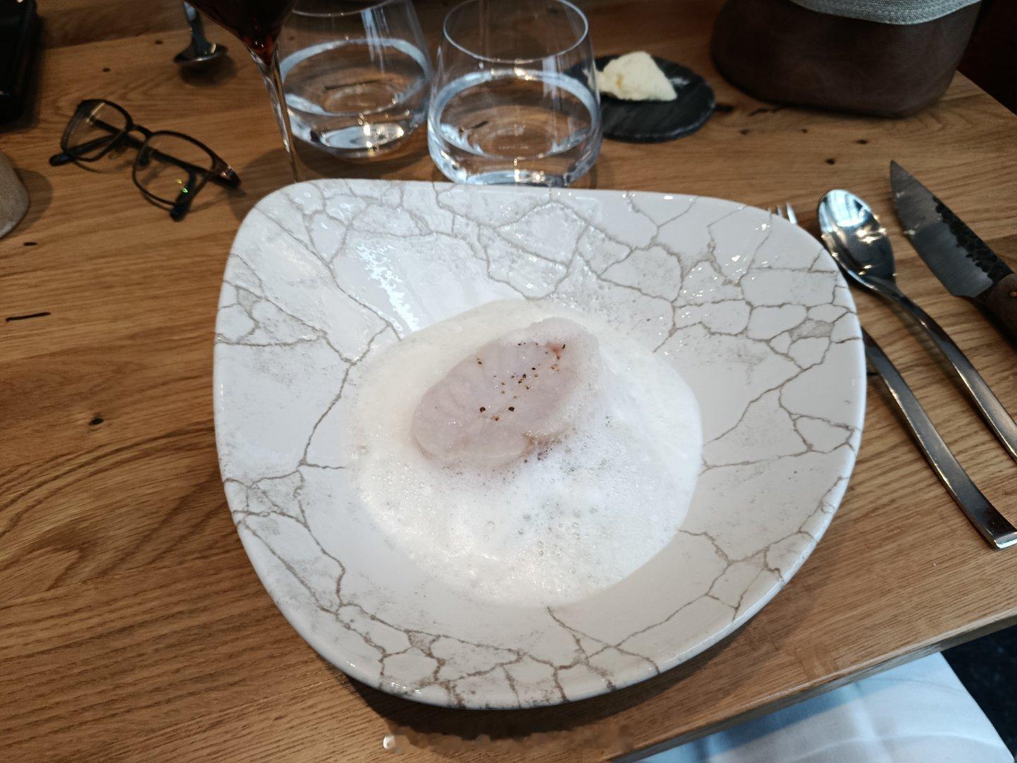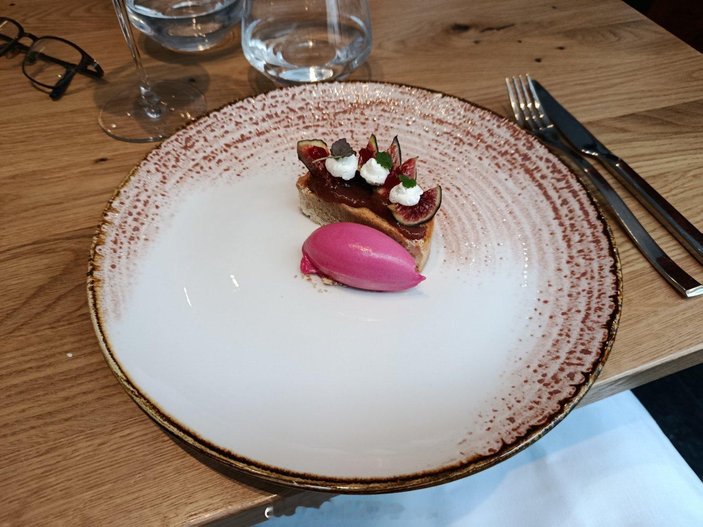 中午在巴黎市中心找了一家小而精致的法餐馆 Empreinte。前菜是 Terrine 法式肉冻,抹在面包上刚刚好。主菜选了 Lieu 狭鳕鱼,鱼肉细嫩,配上清淡的奶油酱汁,底下垫着一层柔滑的土豆泥,简单却很舒服。甜点是无花果的小点心。全程来一杯葡萄酒作陪。最后以一杯咖啡 café rallonge 收尾。补充完能量,下午继续搬砖。
