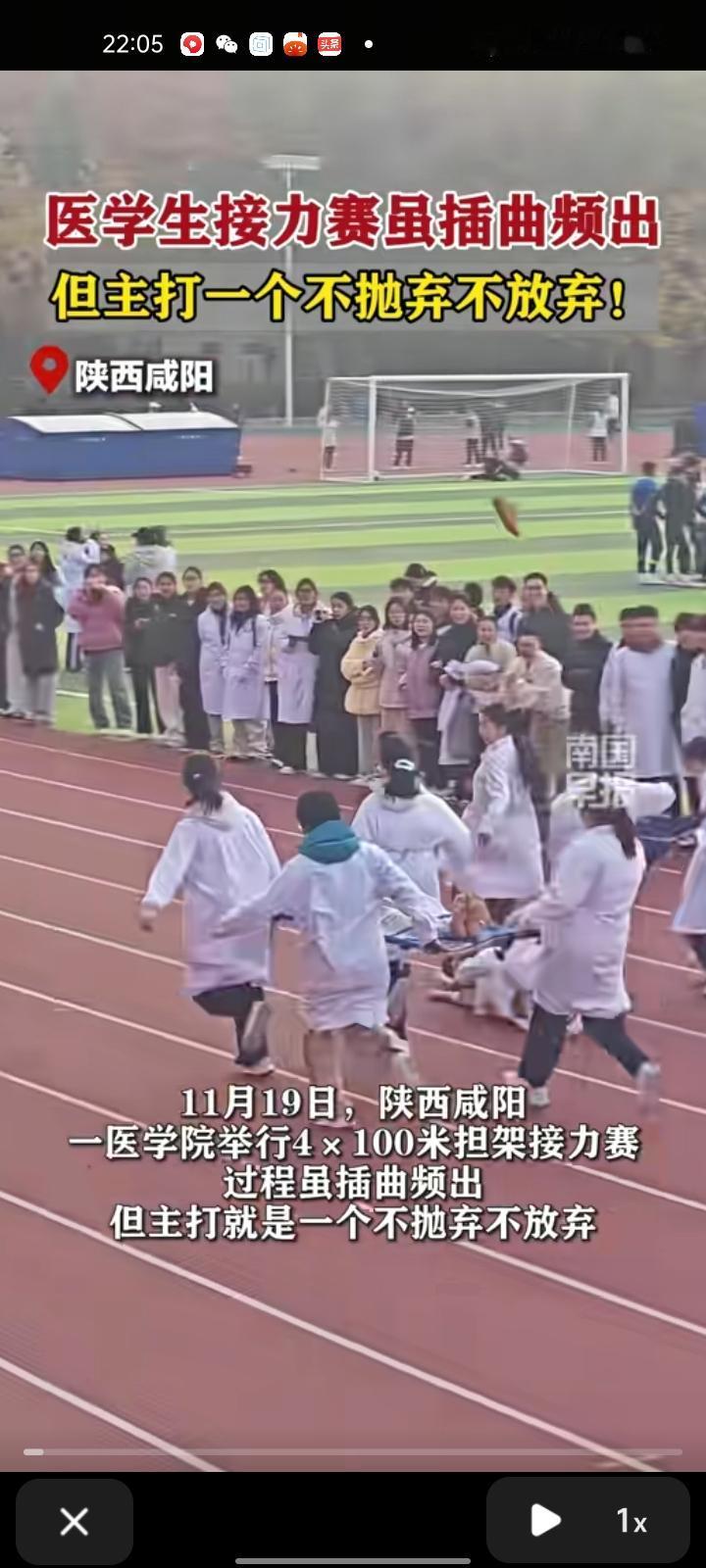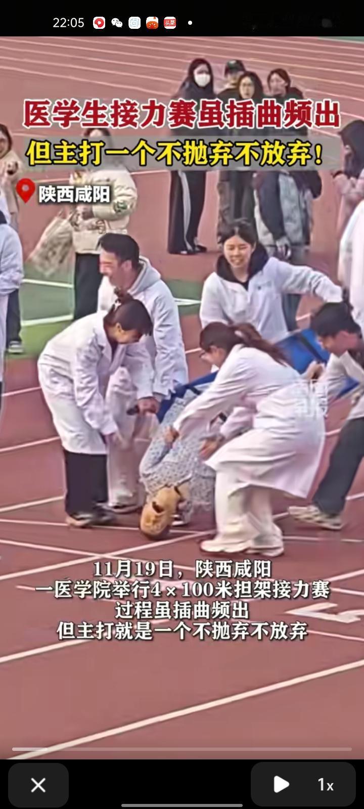 11月19日,陕西咸阳。西藏民族大学举行4*100米担架接力赛,过程虽插曲频出,但主打就是不抛弃不放弃。有网友称,担架上一个人偶的重量是120斤。 王同学称,自己是视频中掉鞋的女同学,发生这件事感到特别道歉,个人原因拖了班级的后腿,发到抖音上收获意外惊喜,能被这么多人关注感到非常荣幸